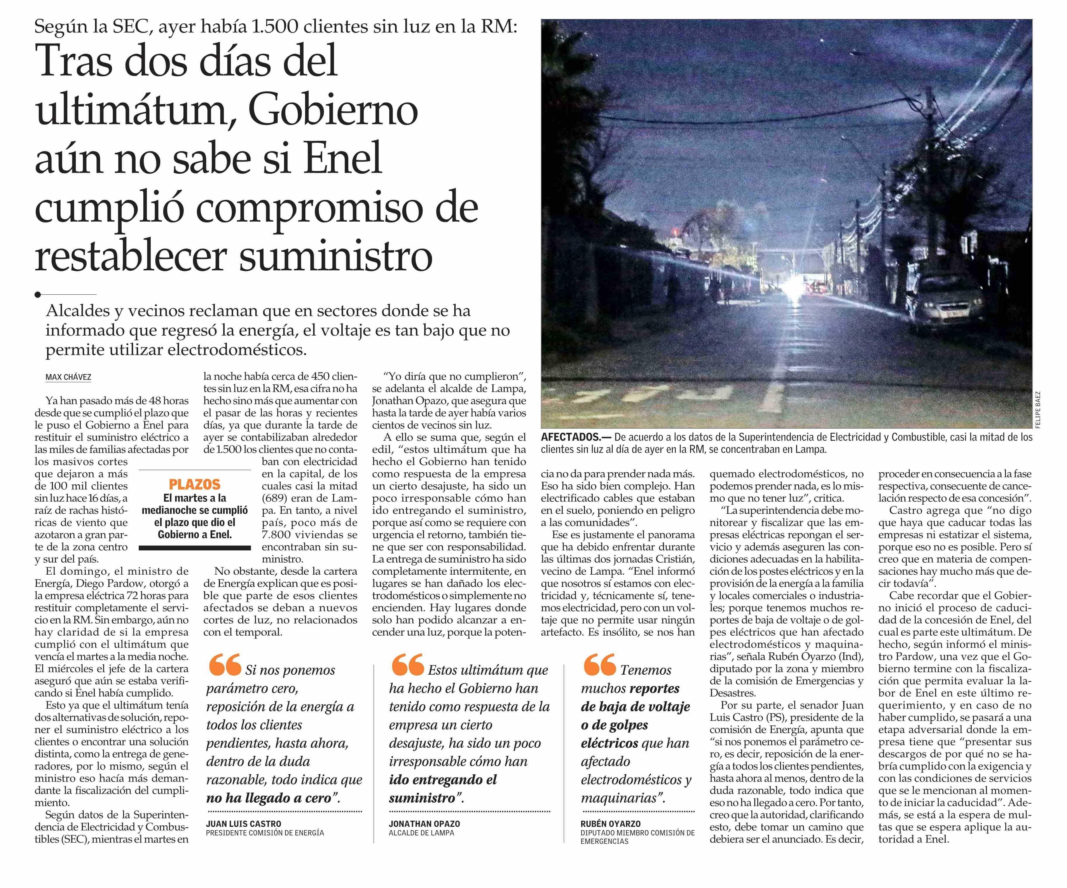 Tras dos días del ultimátum, Gobierno aún no sabe si Enel cumplió compromiso de restablecer suministro