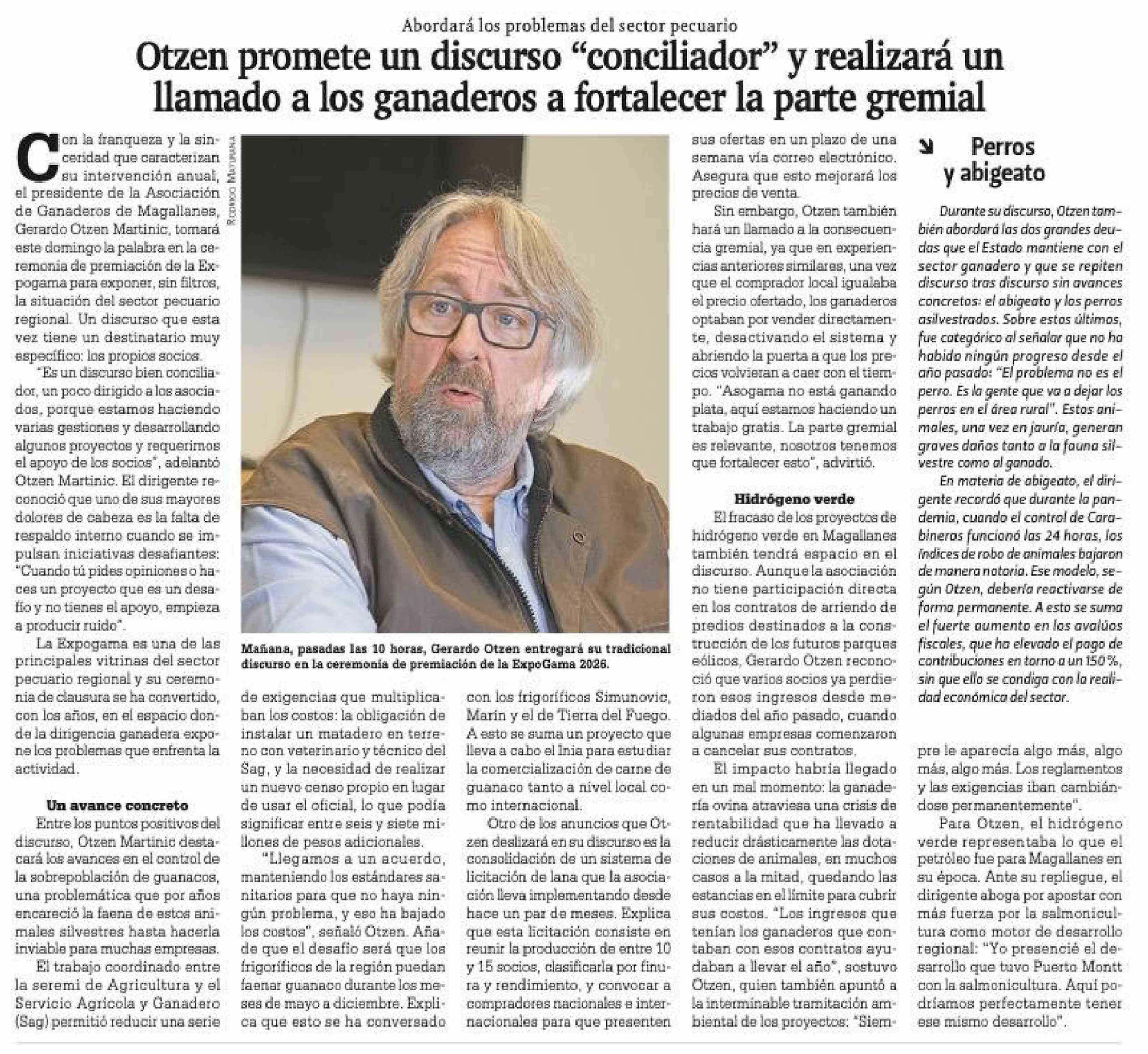 Otzen promete un discurso "conciliador" y realizará un llamado a los ganaderos a fortalecer la parte gremial