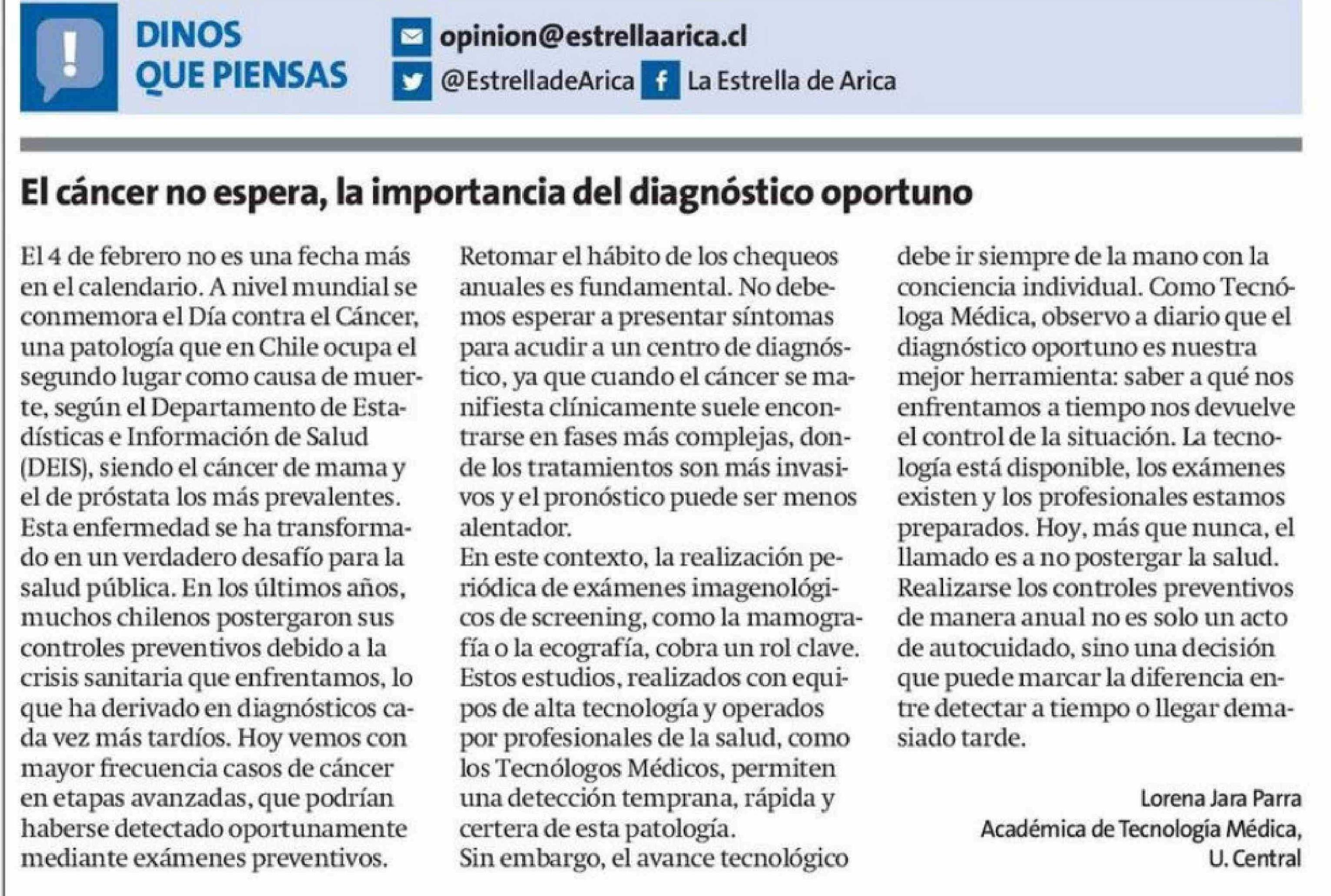 Título: Cartas: El cáncer no espera, la importancia del diagnóstico oportuno