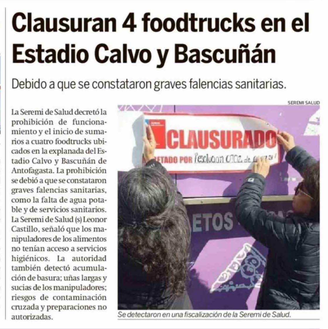 Clausuran 4 foodtrucks en el Estadio Calvo y Bascuñán