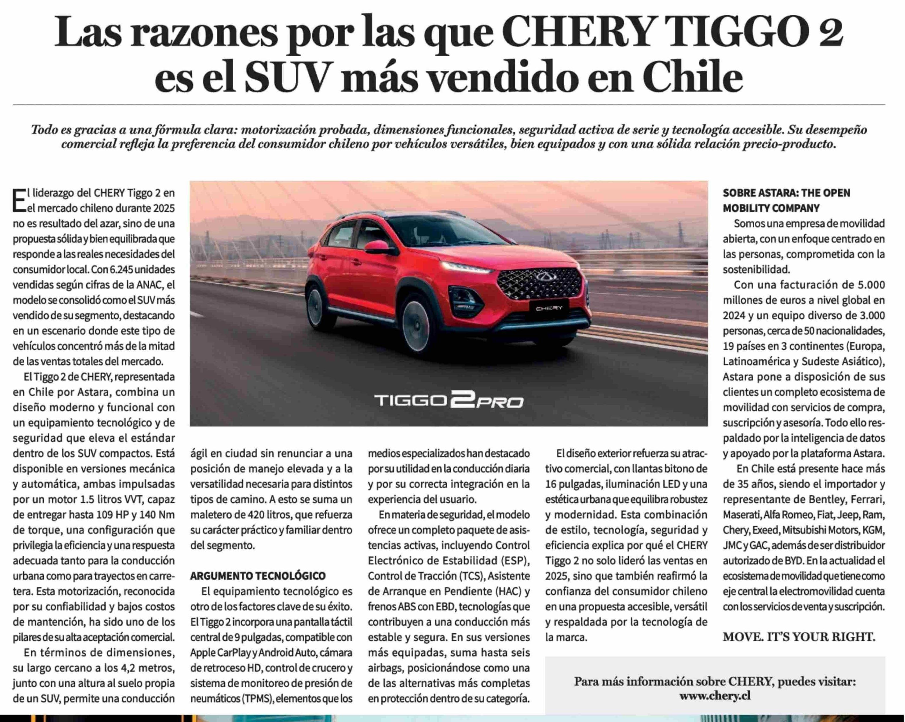 Las razones por las que CHERY TIGGO 2 es el SUV más vendido en Chile
