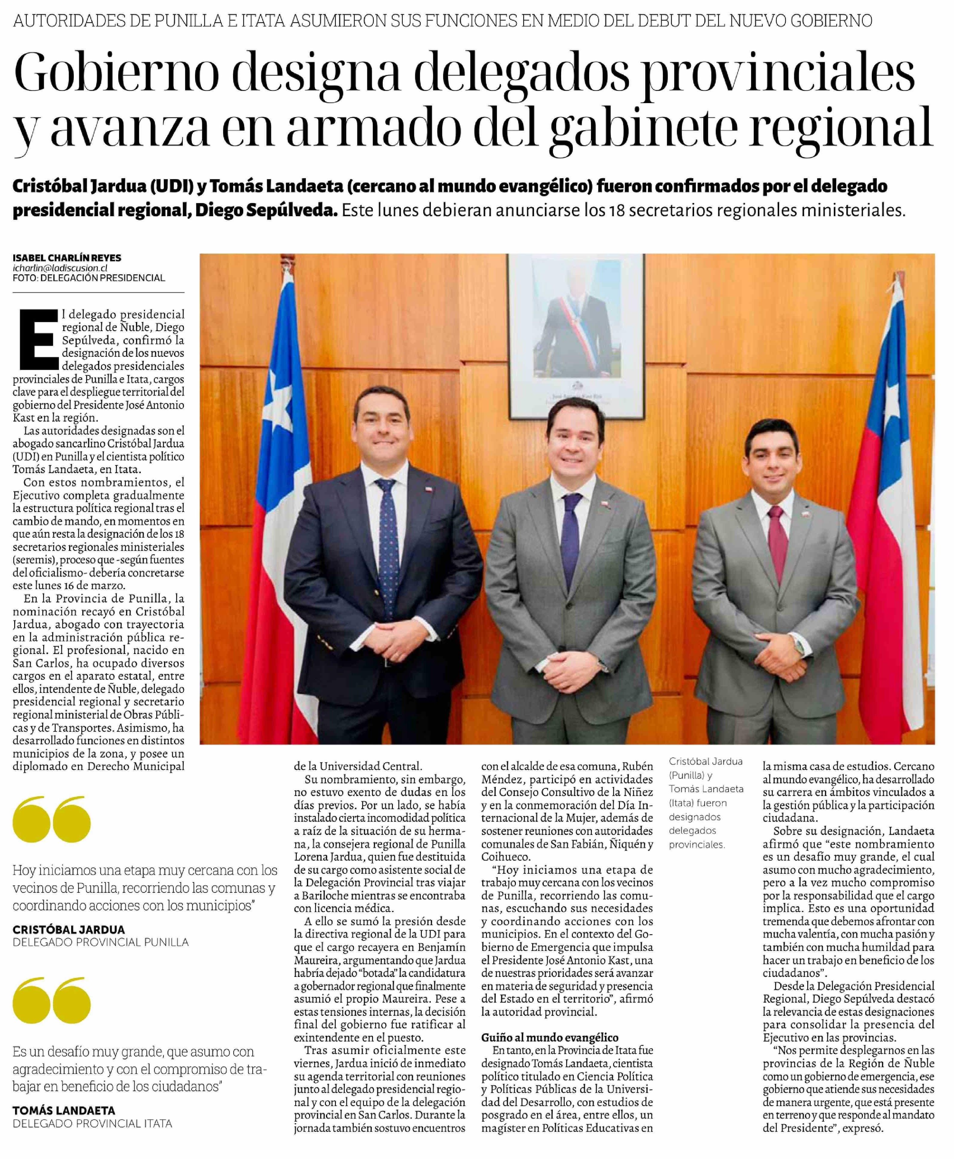 Gobierno designa delegados provinciales y avanza en armado del gabinete regional