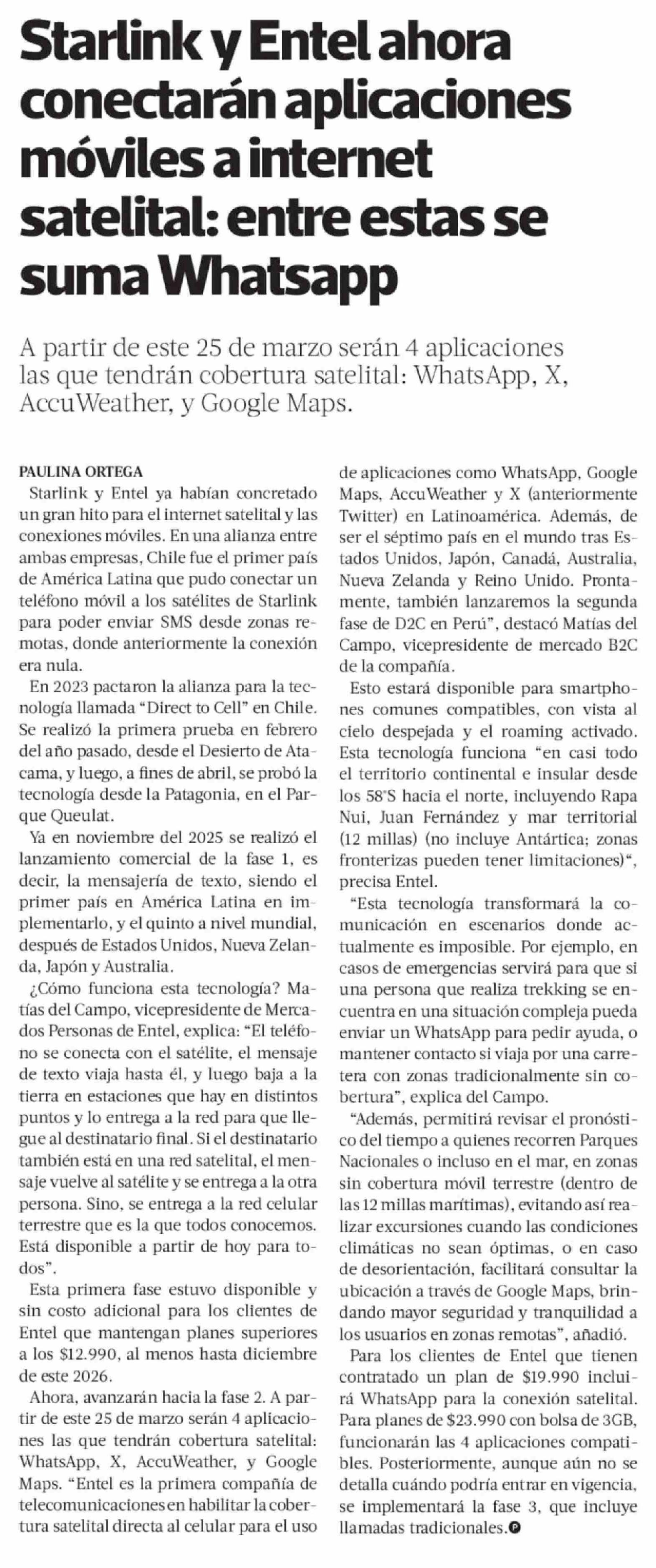 Starlink y Entel ahora conectarán aplicaciones móviles a internet satelital: entre estas se suma Whatsapp