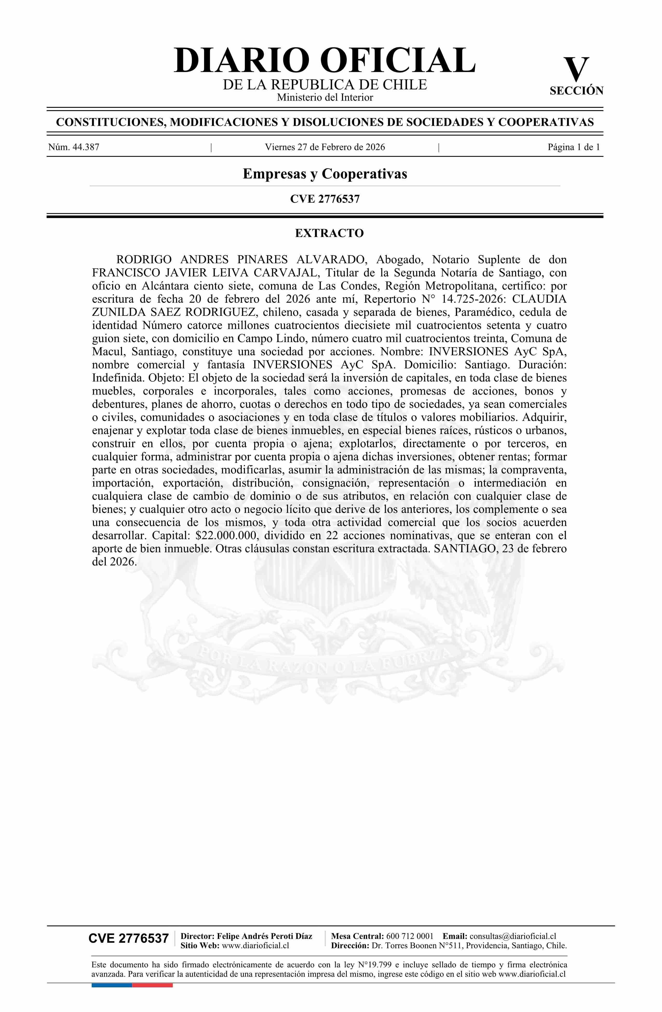 INVERSIONES AyC SpA