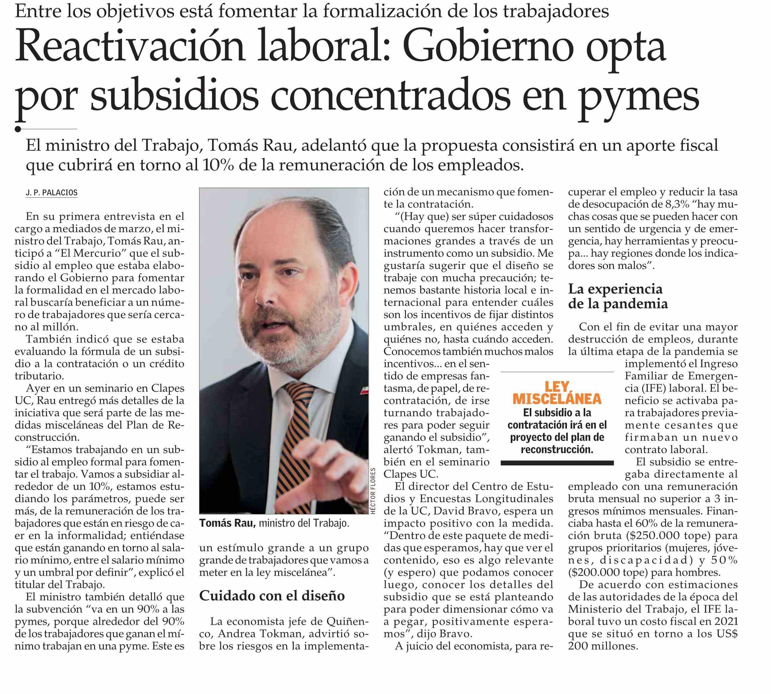 Título: Reactivación laboral: Gobierno opta por subsidios concentrados en pymes