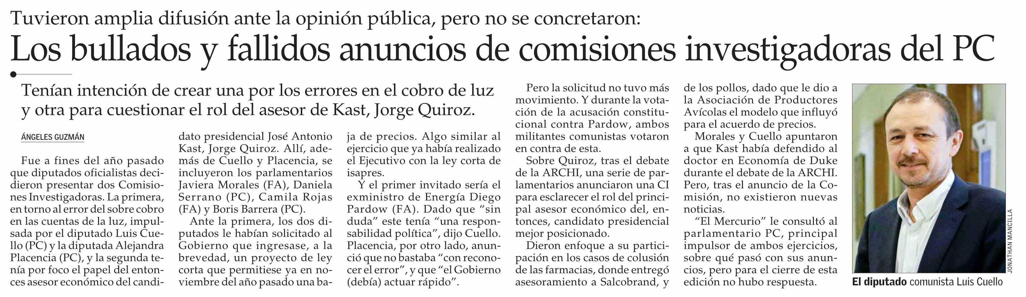 Los bullados y fallidos anuncios de comisiones investigadoras del PC
