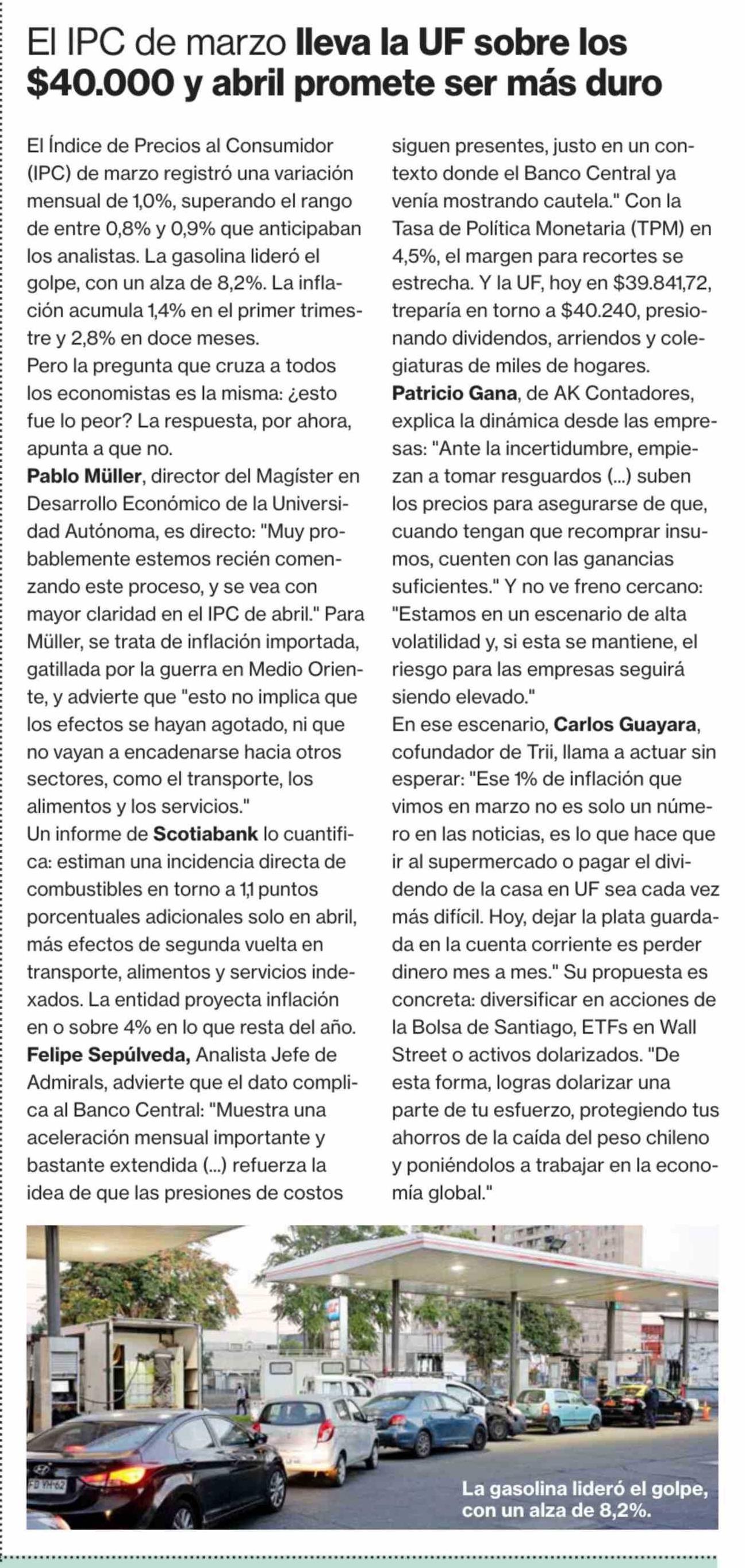 El IPC de marzo lleva la UF sobre los $40.000 y abril promete ser más duro