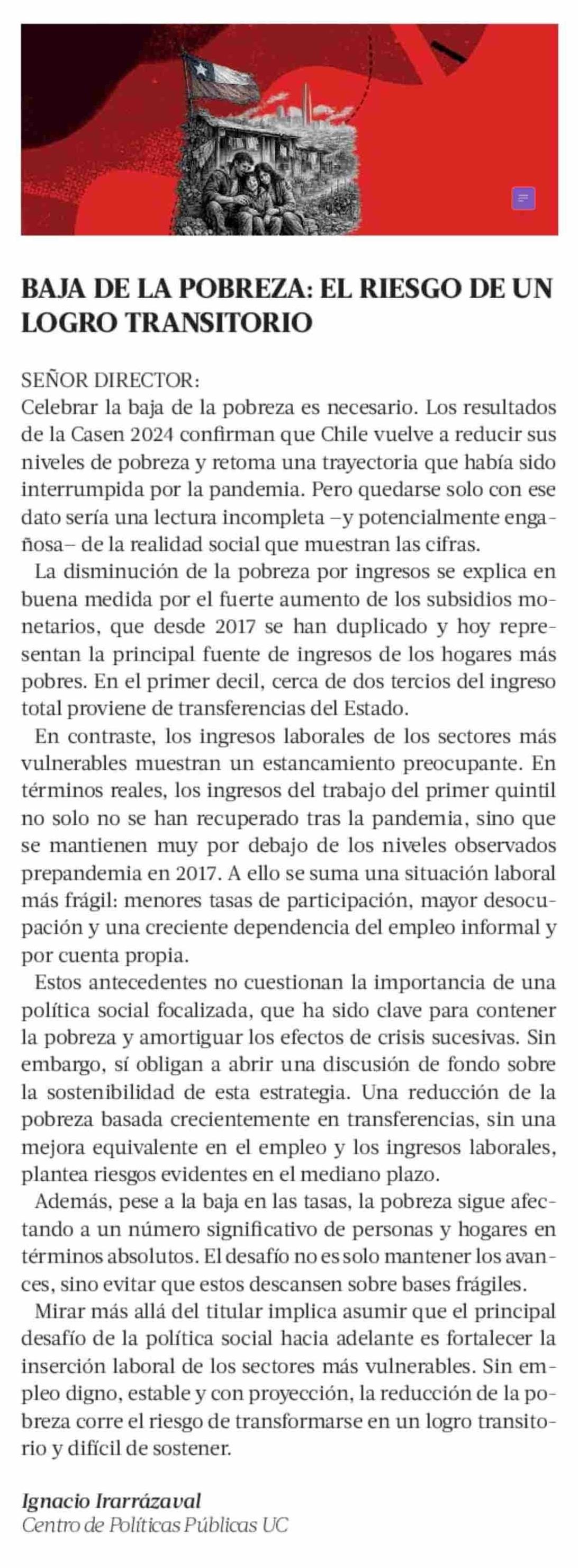 CARTAS: BAJA DE LA POBREZA: EL RIESGO DE UN LOGRO TRANSITORIO