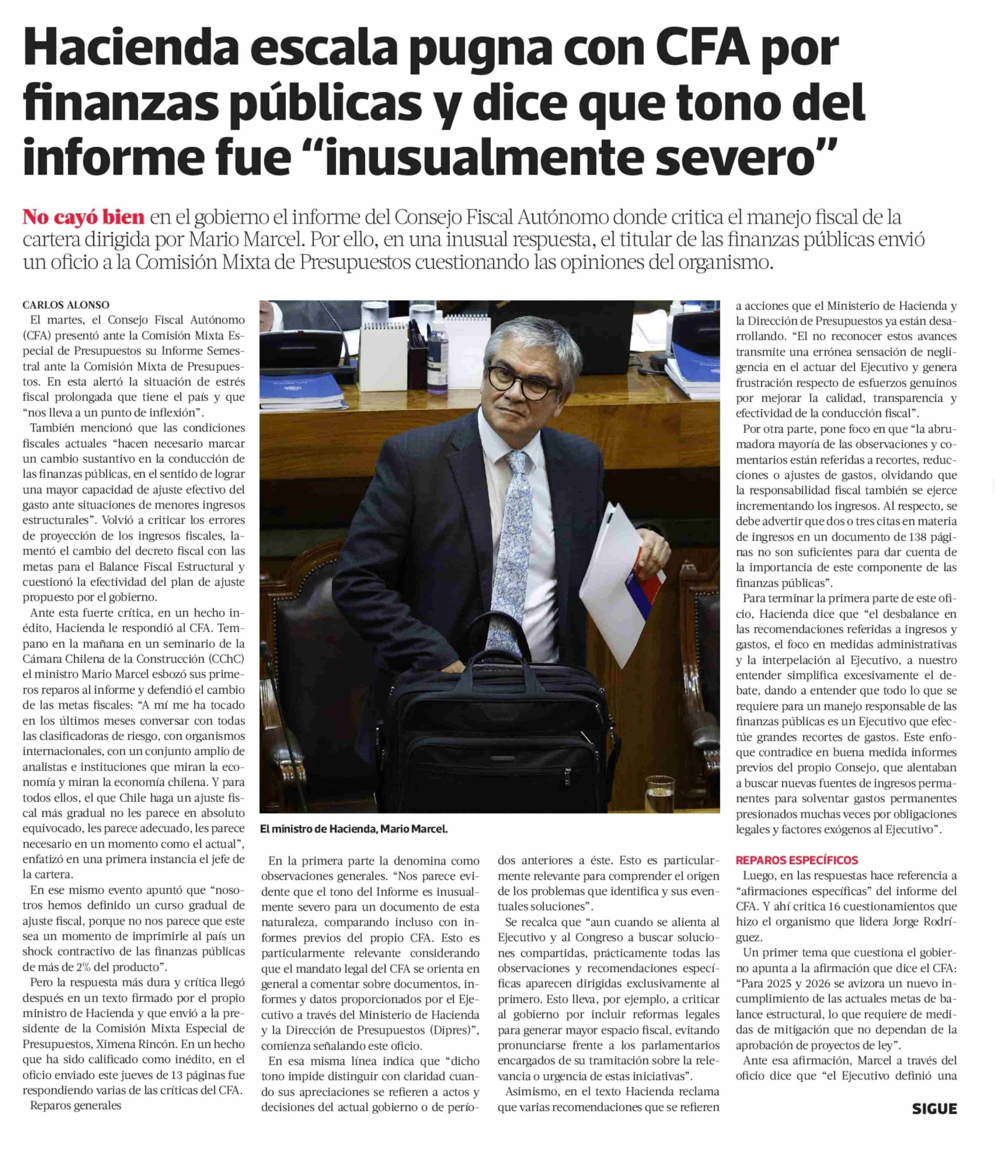 Hacienda escala pugna con CFA por finanzas públicas y dice que tono del informe fue “inusualmente severo”