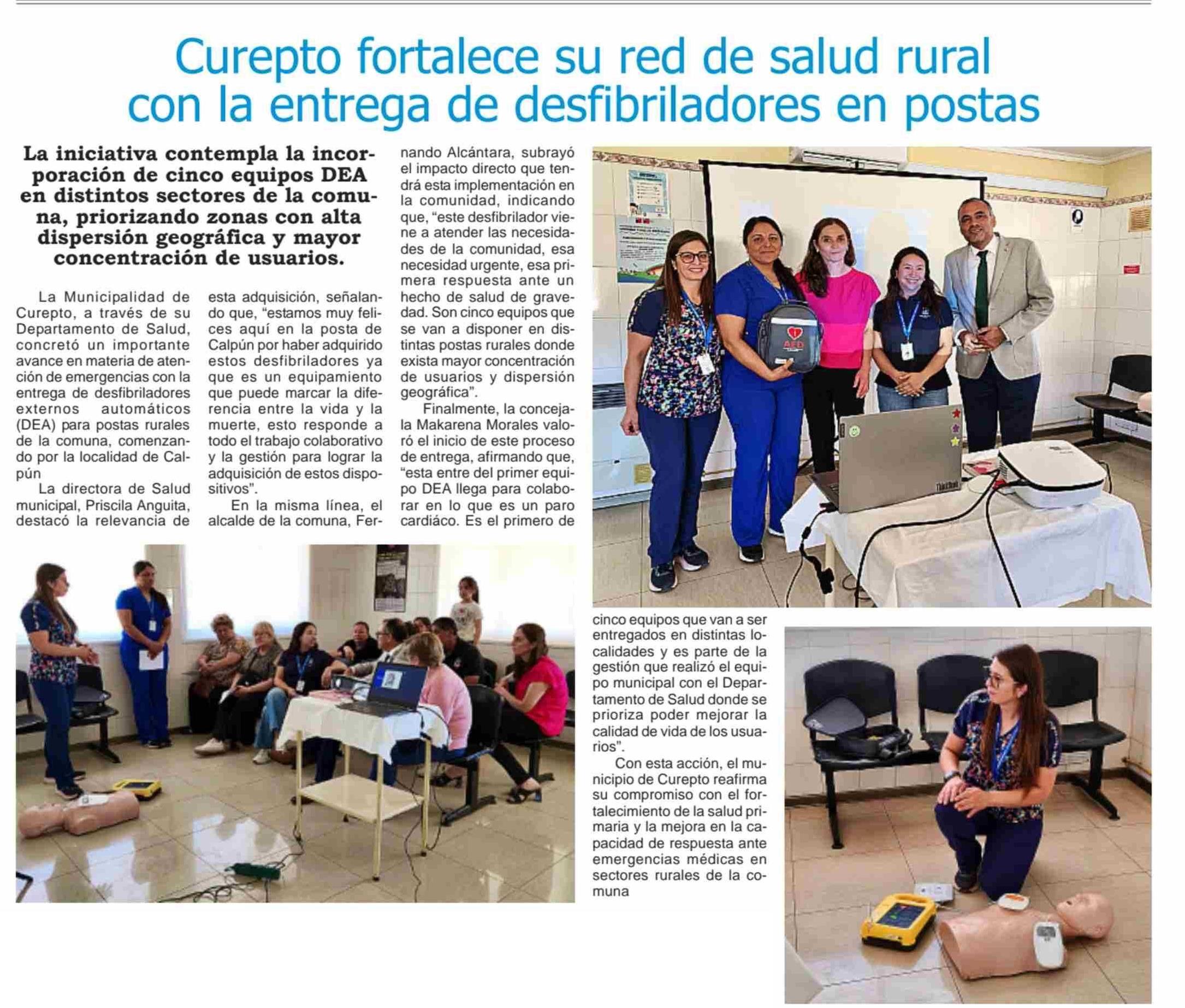 Curepto fortalece su red de salud rural con la entrega de desfibriladores en postas