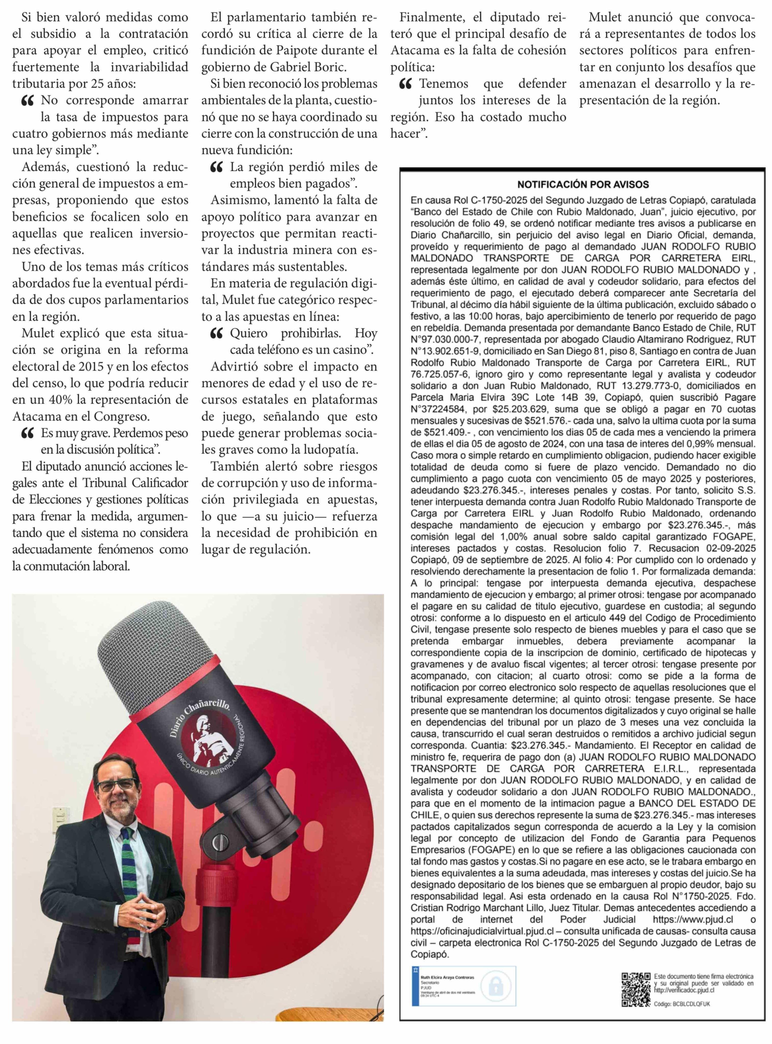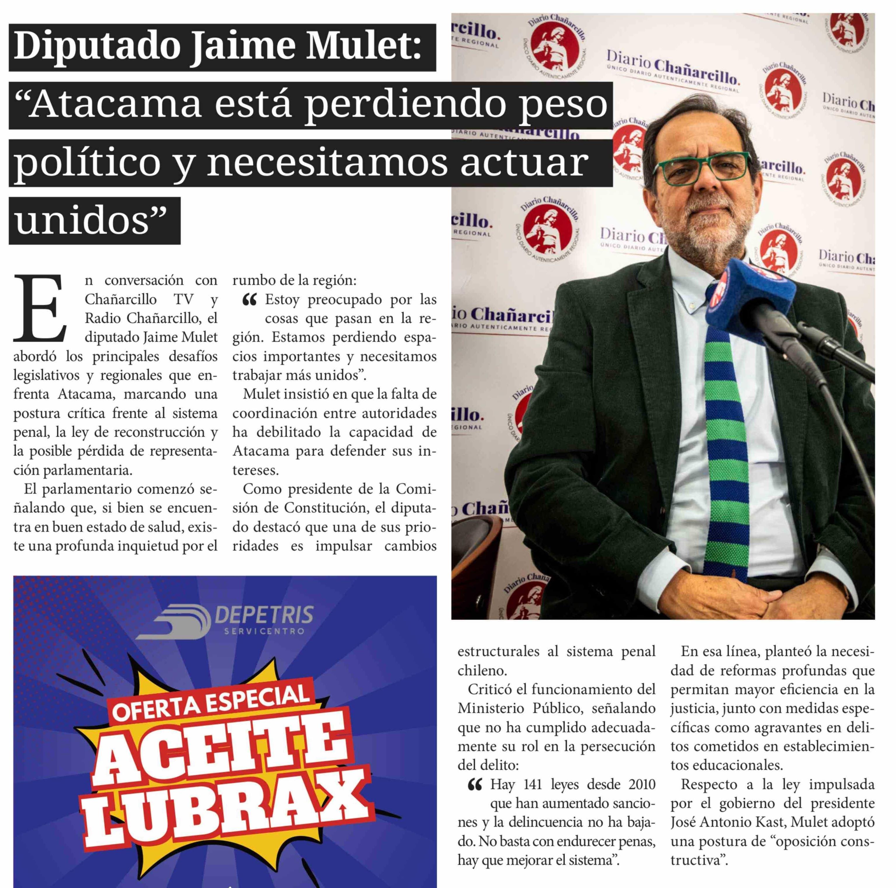 Diputado Jaime Mulet: "Atacama está perdiendo peso político y necesitamos actuar unidos"