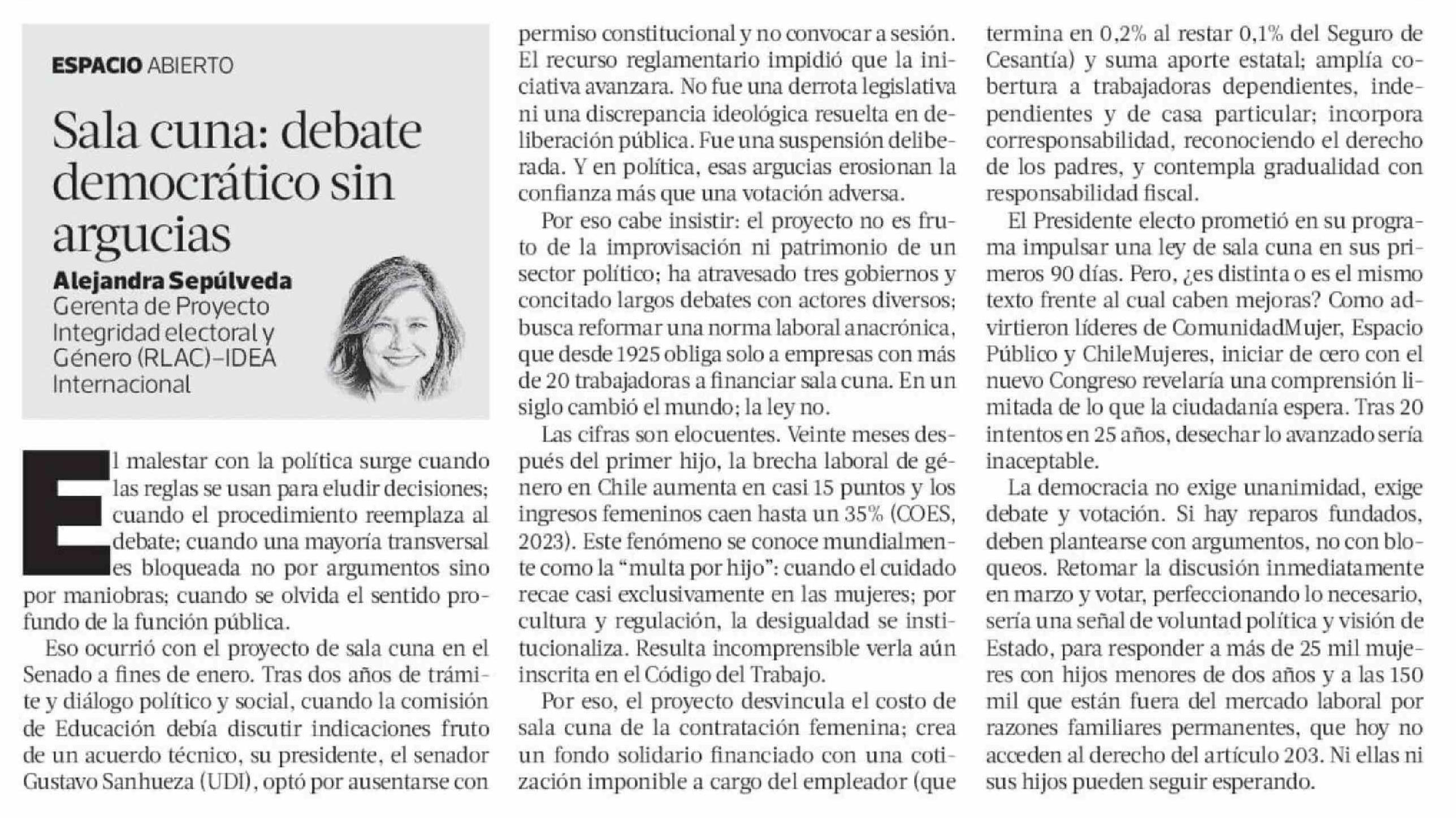 Columnas de Opinión: Sala cuna: debate democrático sin argucias