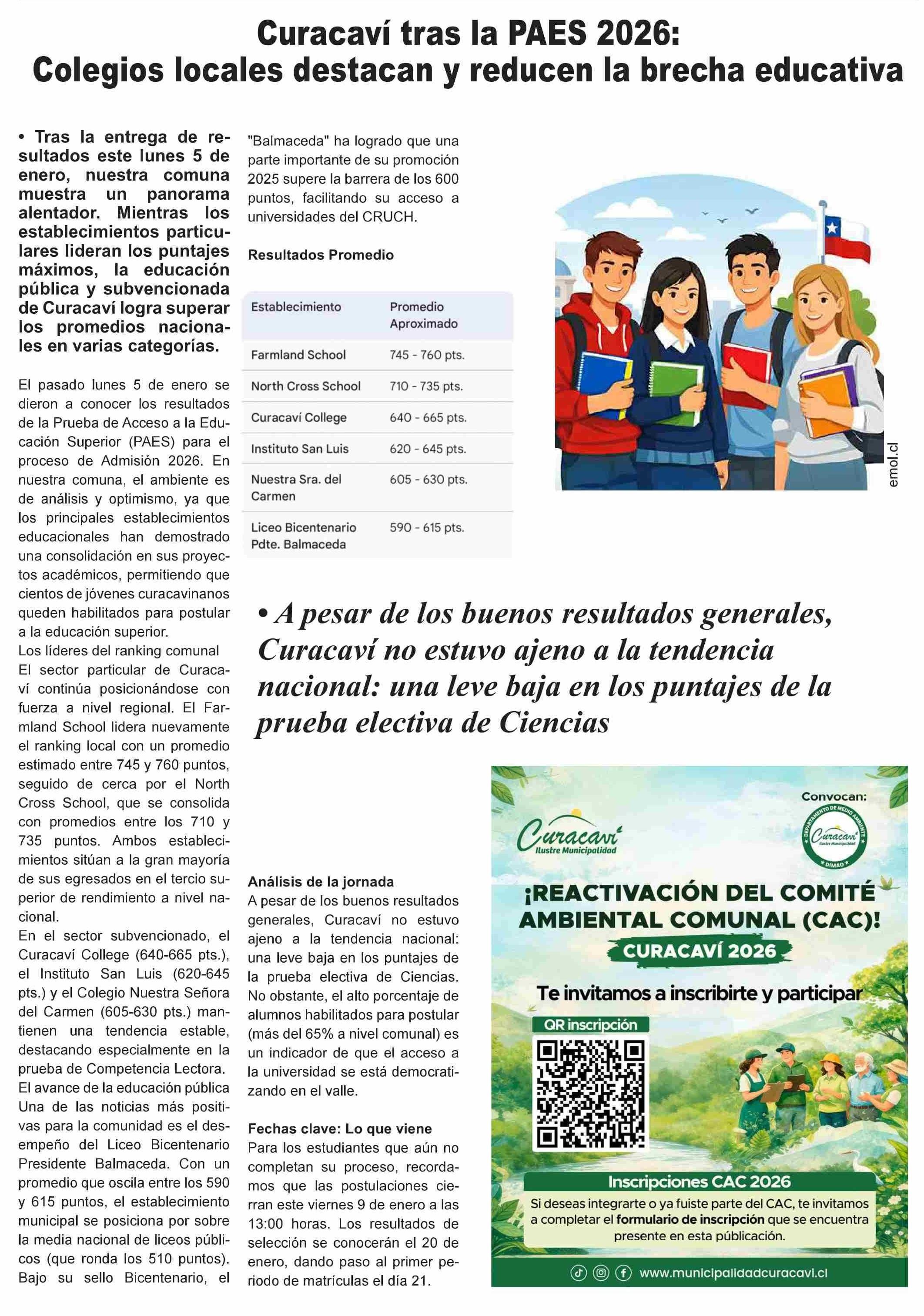 Curacaví tras la PAES 2026: Colegios locales destacan y reducen la brecha educativa
