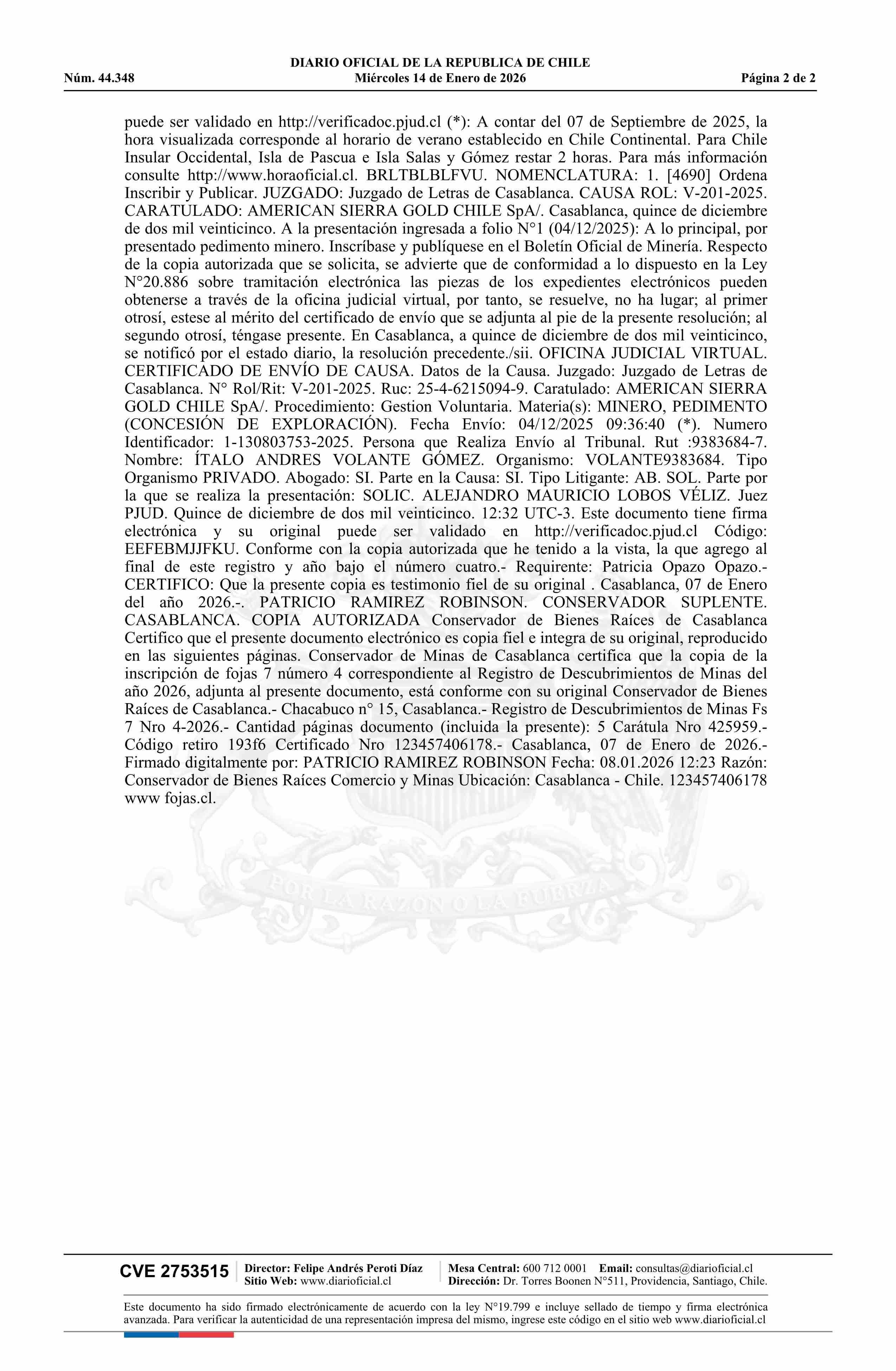 DIARIO OFICIAL CHILE - BOLETÍN OFICIAL DE MINERÍA (DIARIO OFICIAL CHILE – BOM – PEDIMENTOS MINEROS)