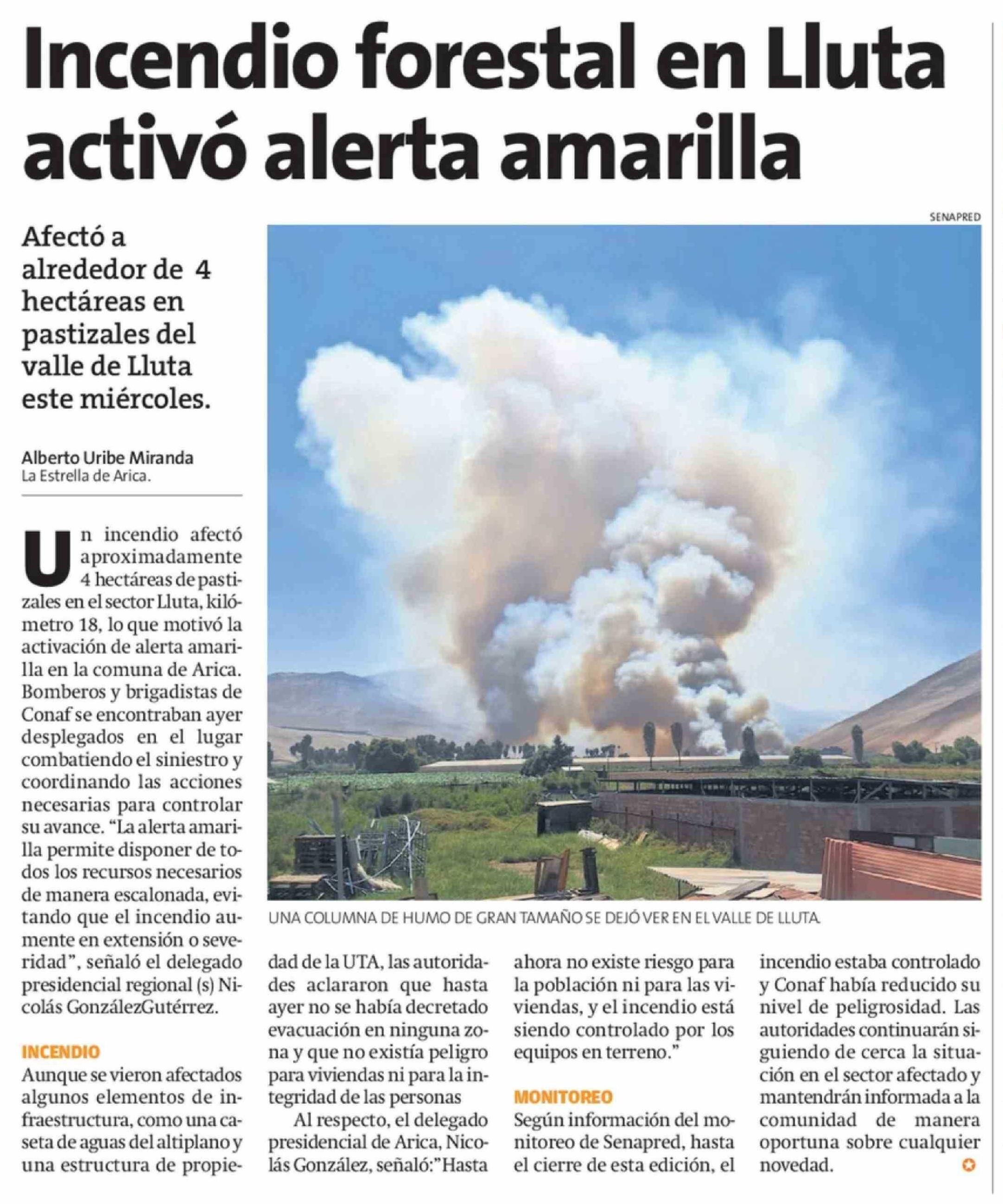Incendio forestal en Lluta activó alerta amarilla