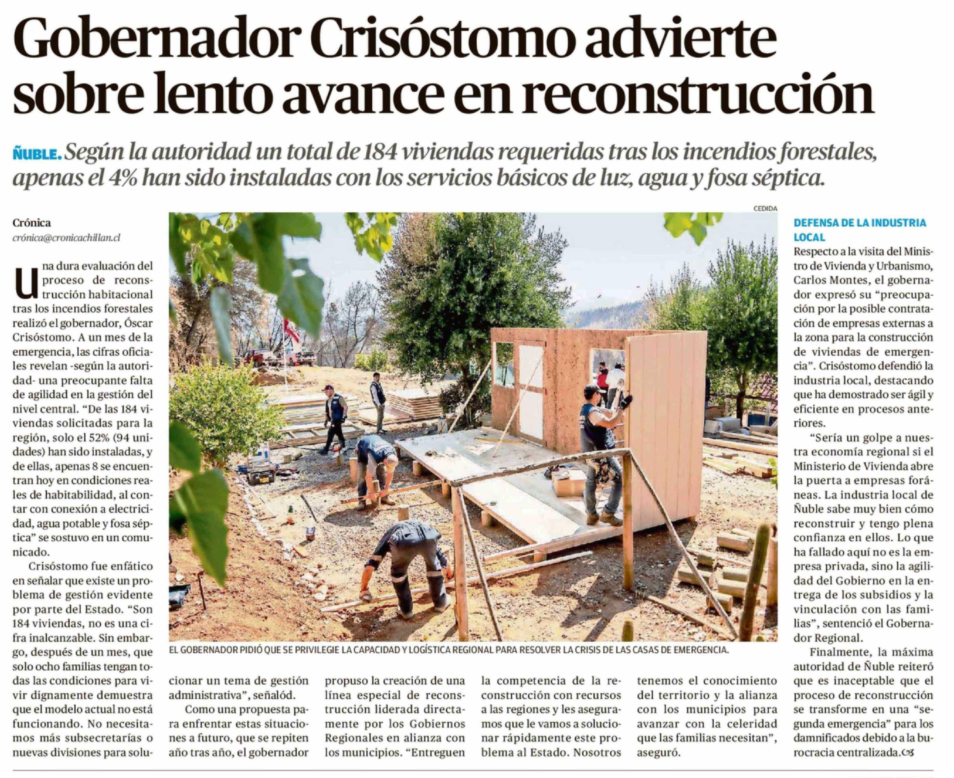 Gobernador Crisóstomo advierte sobre lento avance en reconstrucción