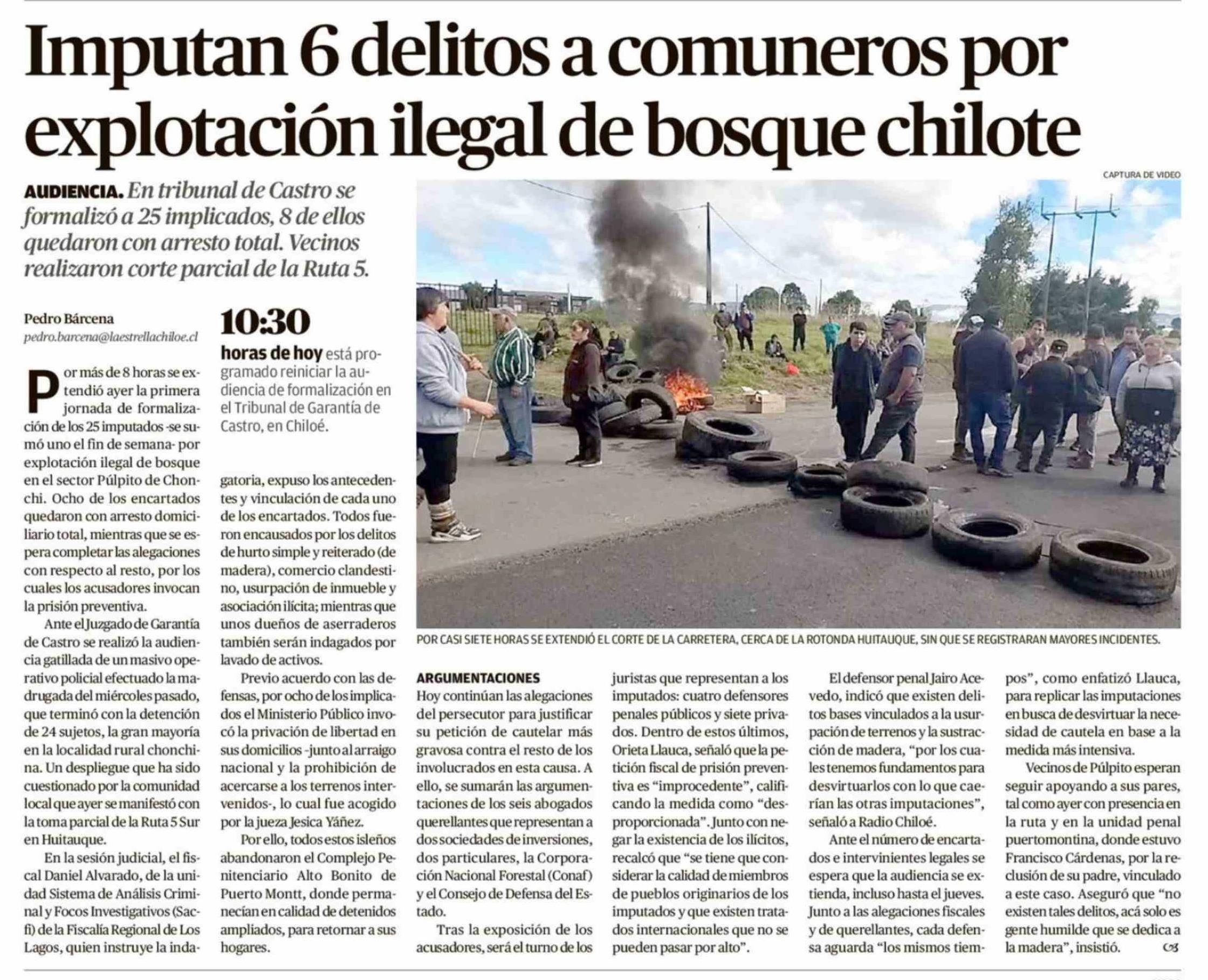Imputan 6 delitos a comuneros por explotación ilegal de bosque chilote