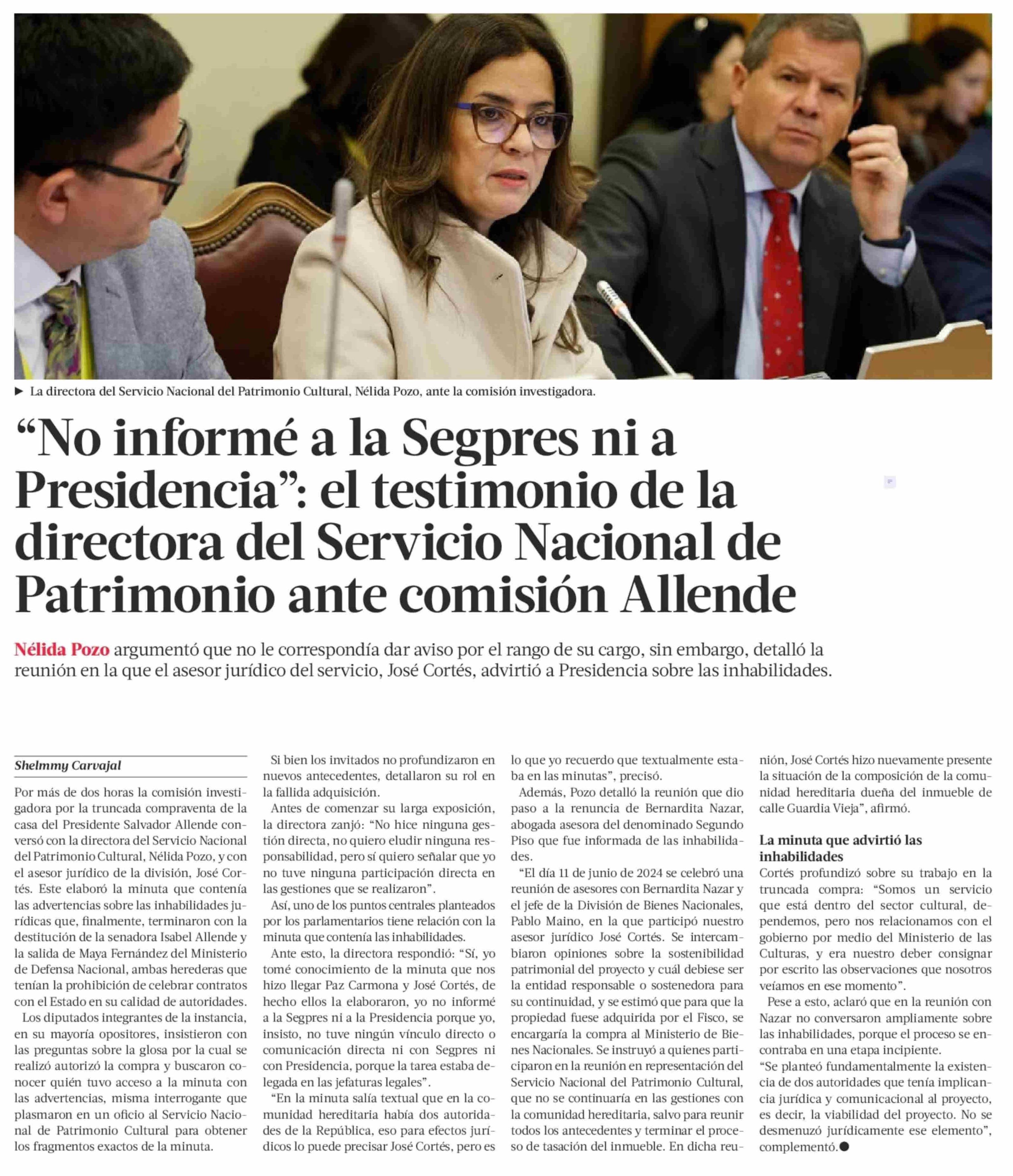 “No informé a La Segpres ni a Presidencia”: el testimonio de la directora del Servicio Nacional de Patrimonio ante comisión Allende
