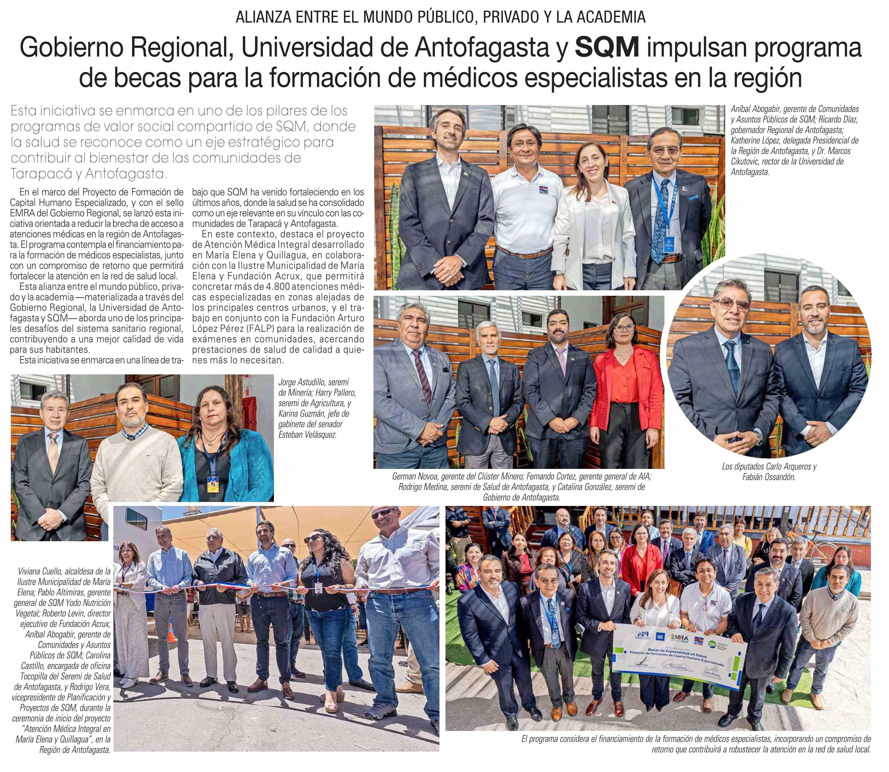 Gobierno Regional, Universidad de Antofagasta y SQM impulsan programa de becas para la formación de médicos especialistas en la región