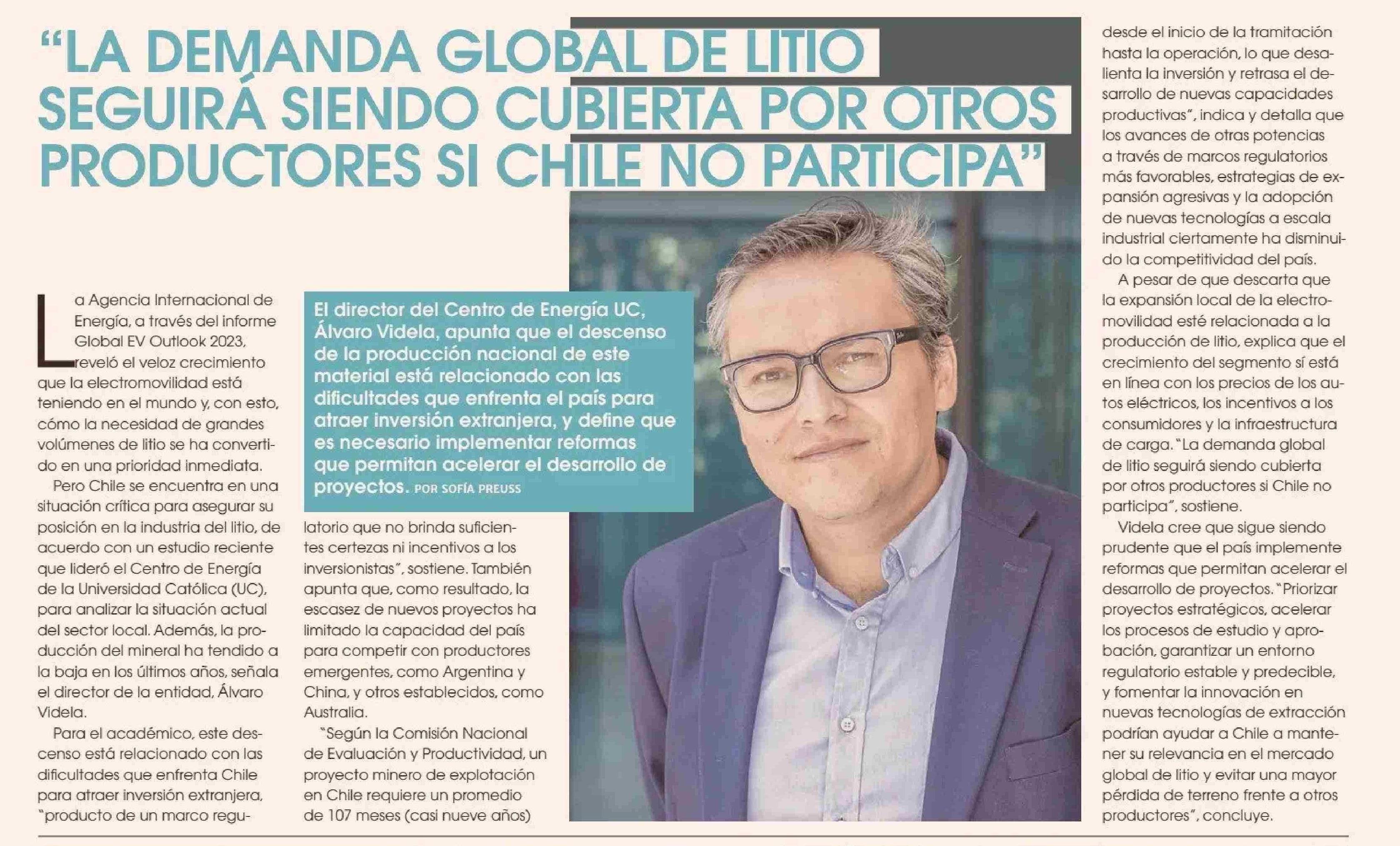 " LA DEMANSA GLOBAL DE LITIO SEGUIRÁ SIENDO CUBIERTA POR OTROS PRODUCTORES SI CHILE NO PARTICIPA"