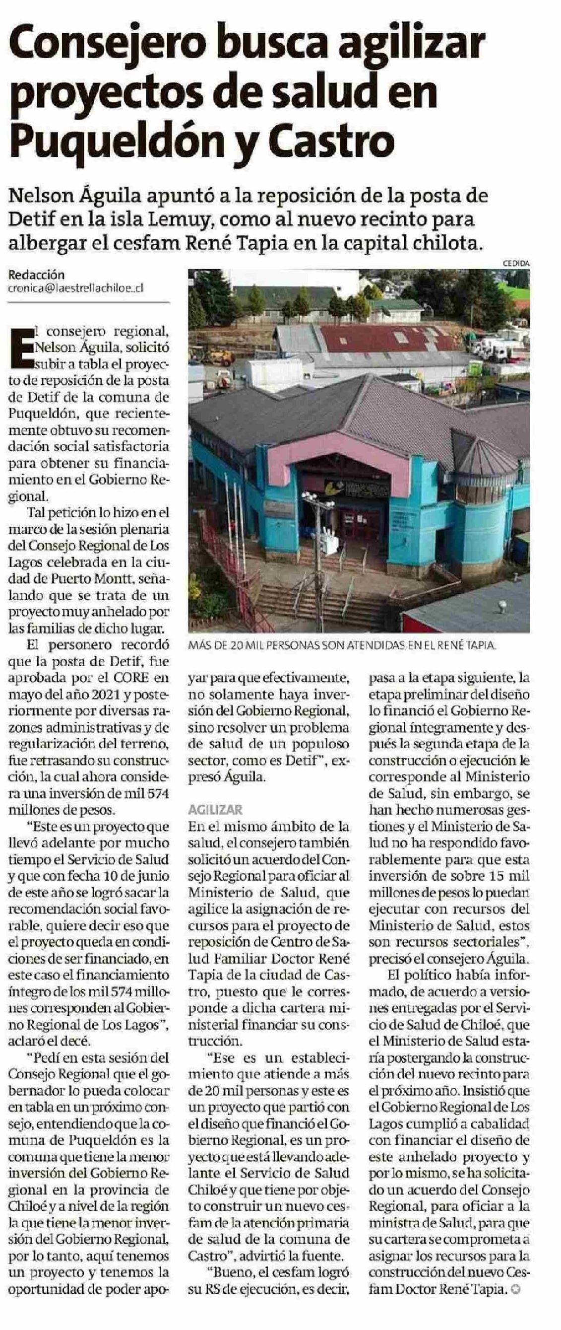 Consejero busca agilizar proyectos de salud en Puqueldón y Castro