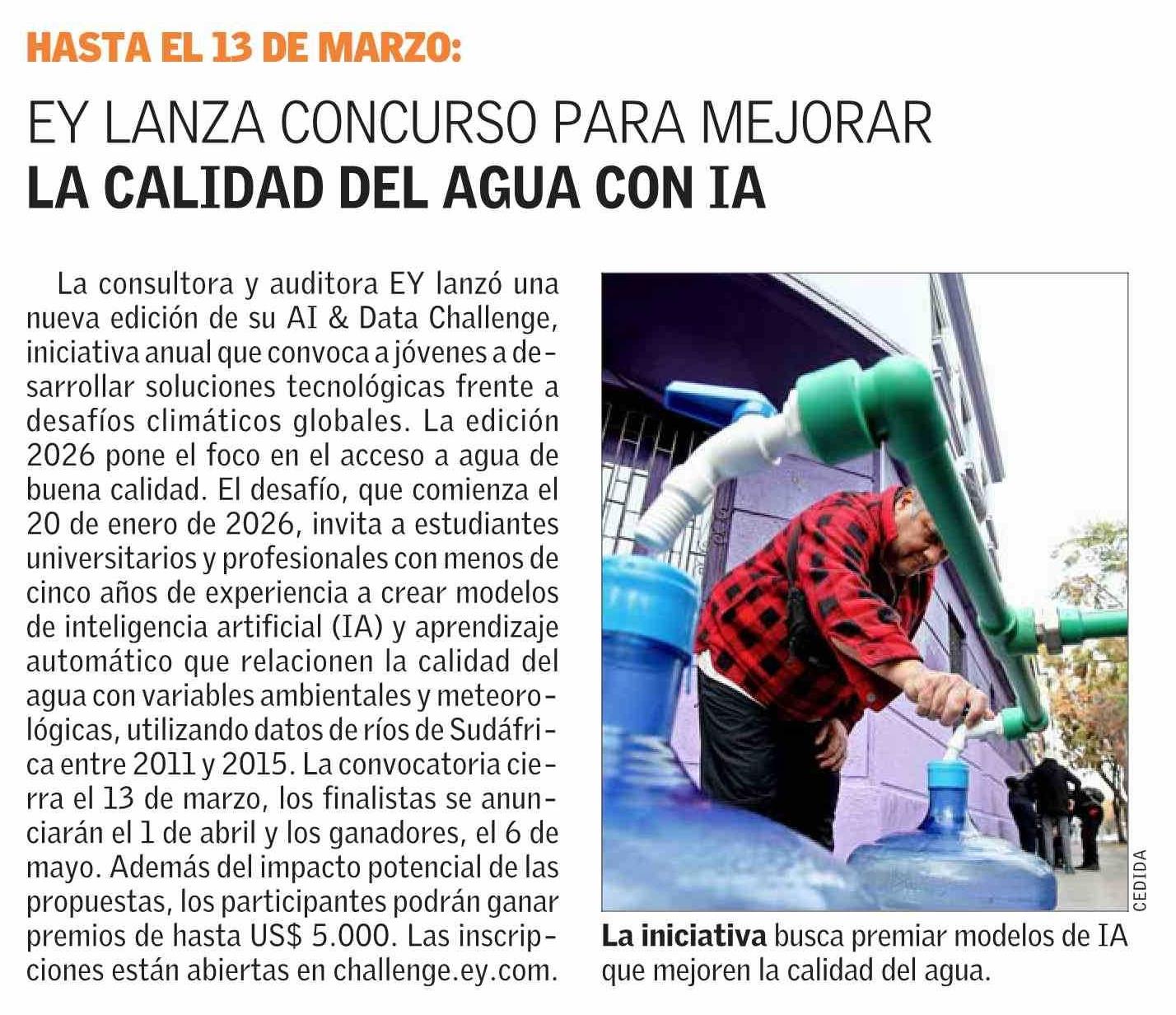 EY LANZA CONCURSO PARA MEJORAR LA CALIDAD DEL AGUA CON IA