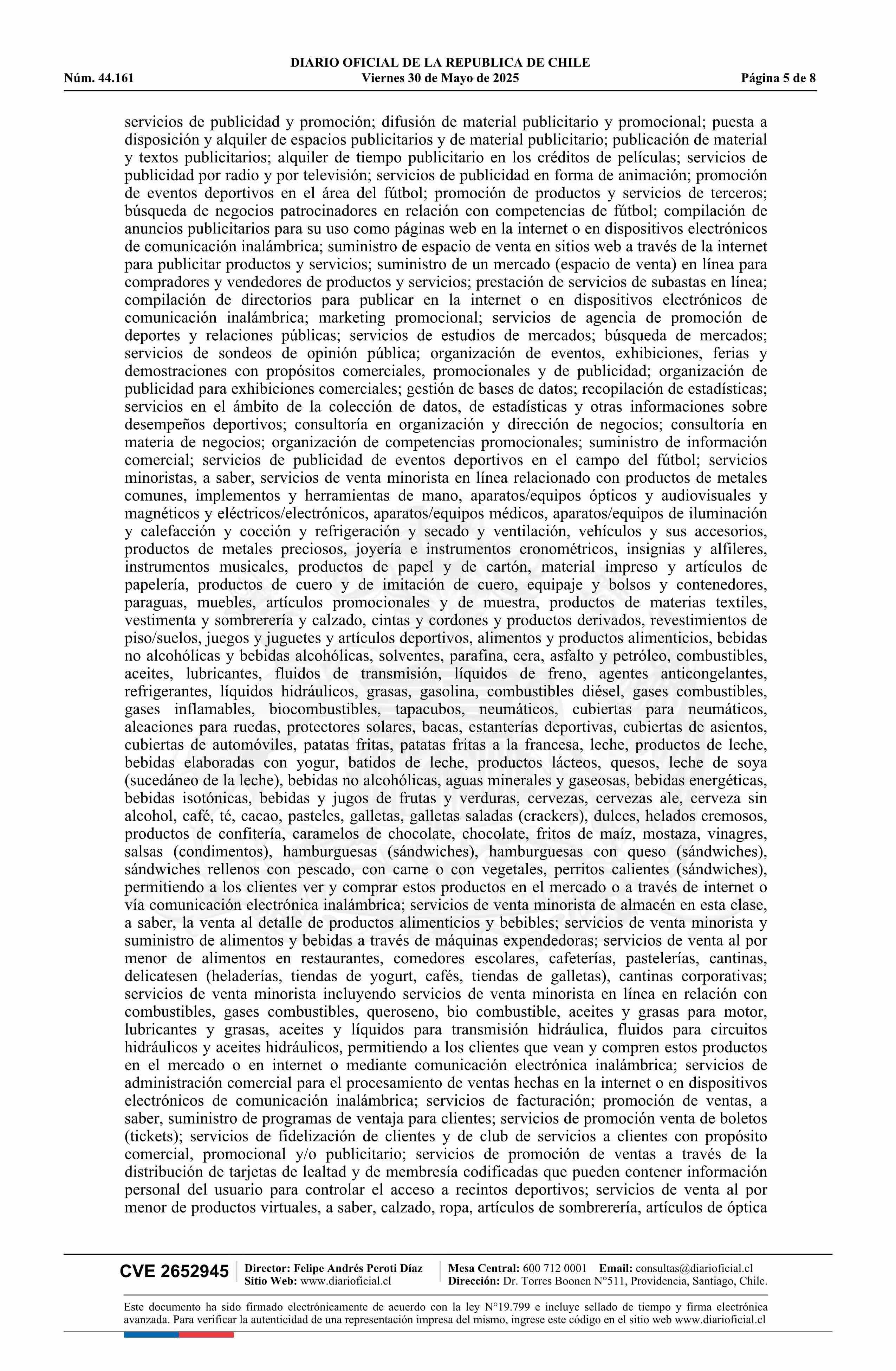 Diario Oficial Edición Electrónica (Diario Oficial de Chile - 6 Marcas Y Patentes)