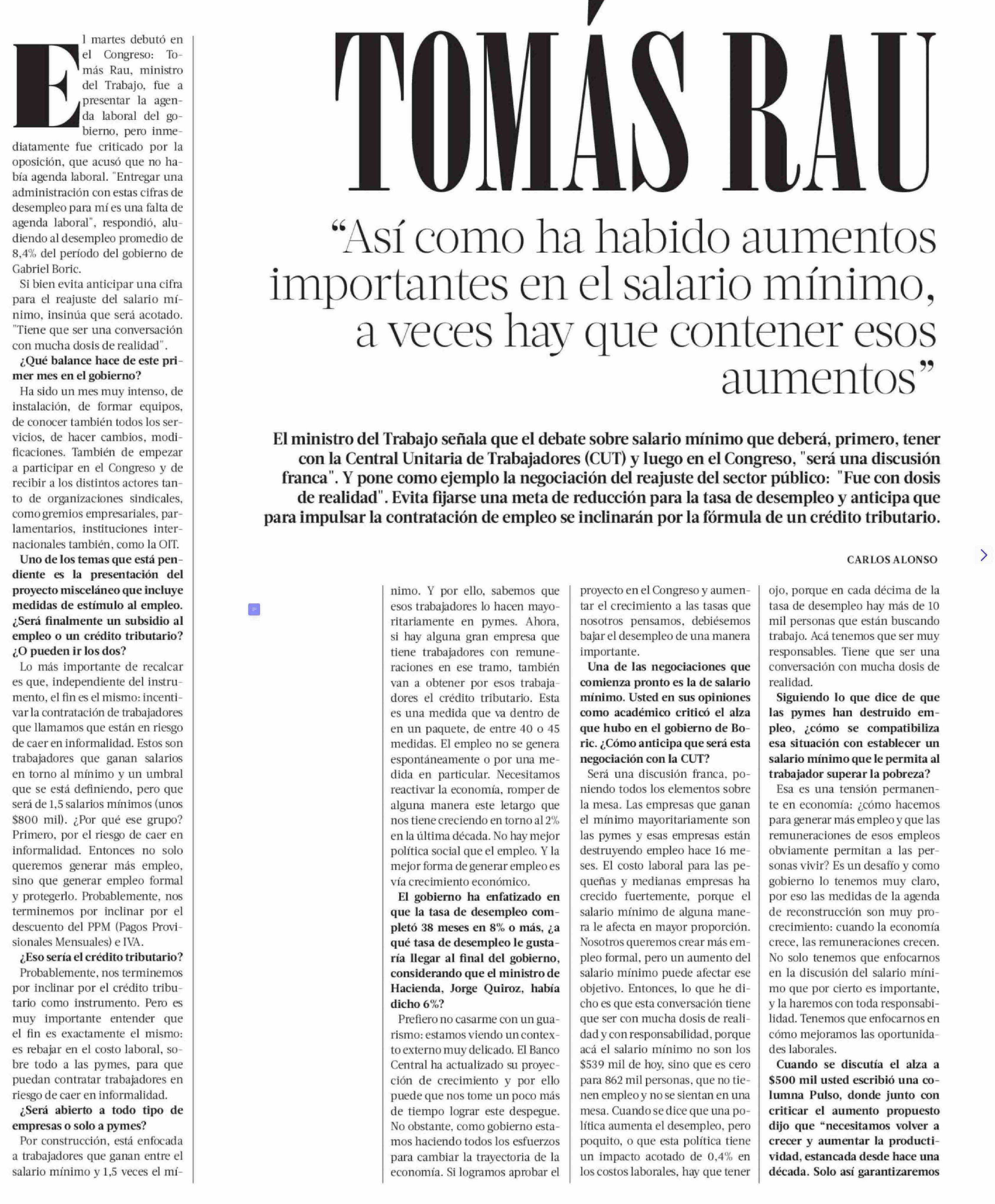 TOMÁS RAU "Así como ha habido aumentos importantes en el salario mínimo, a veces hay que contener esos aumentos "?
