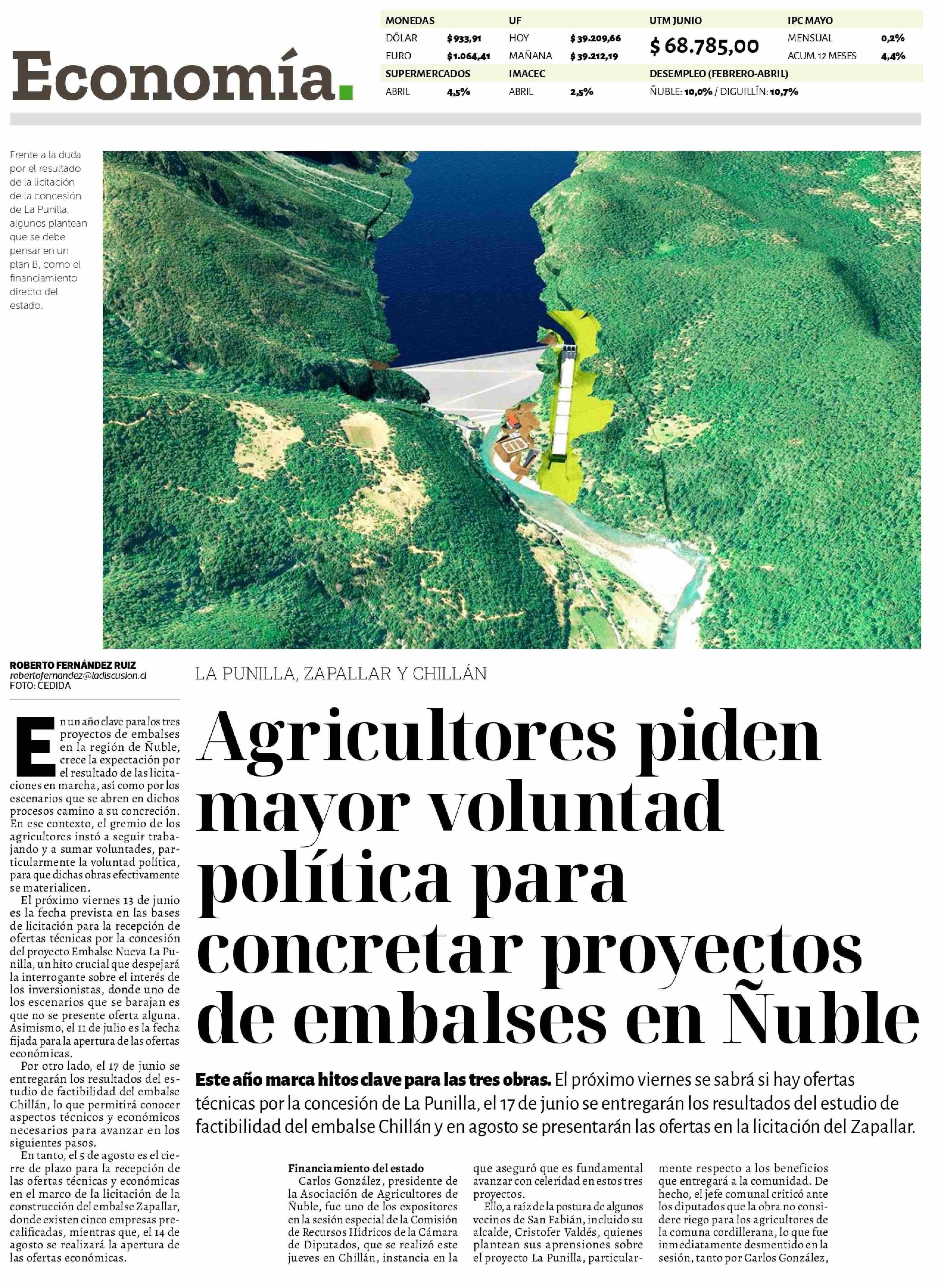 Agricultores piden mavor voluntad política para de embalses en Nuble concretar proyectos
