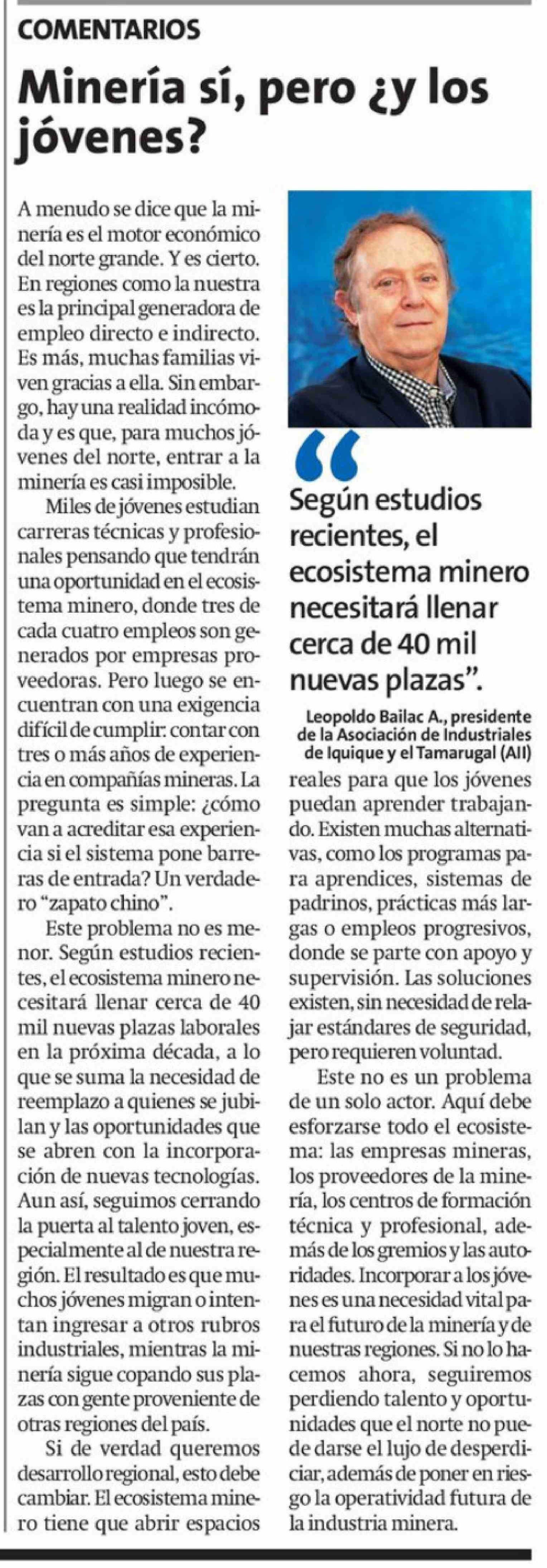 Columnas de Opinión: Minería sí, pero ¿y los jóvenes?