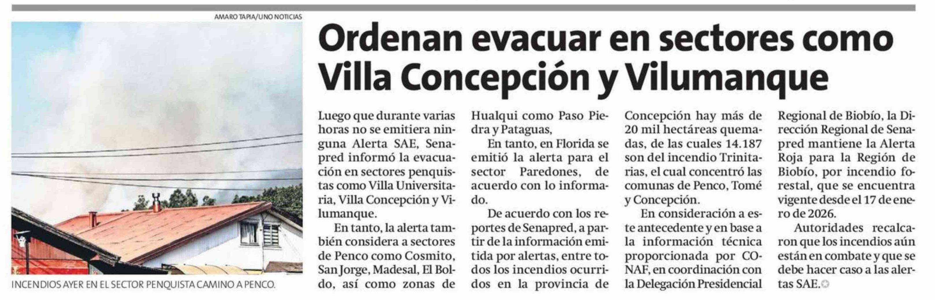 Ordenan evacuar en sectores como Villa Concepción y Vilumanque