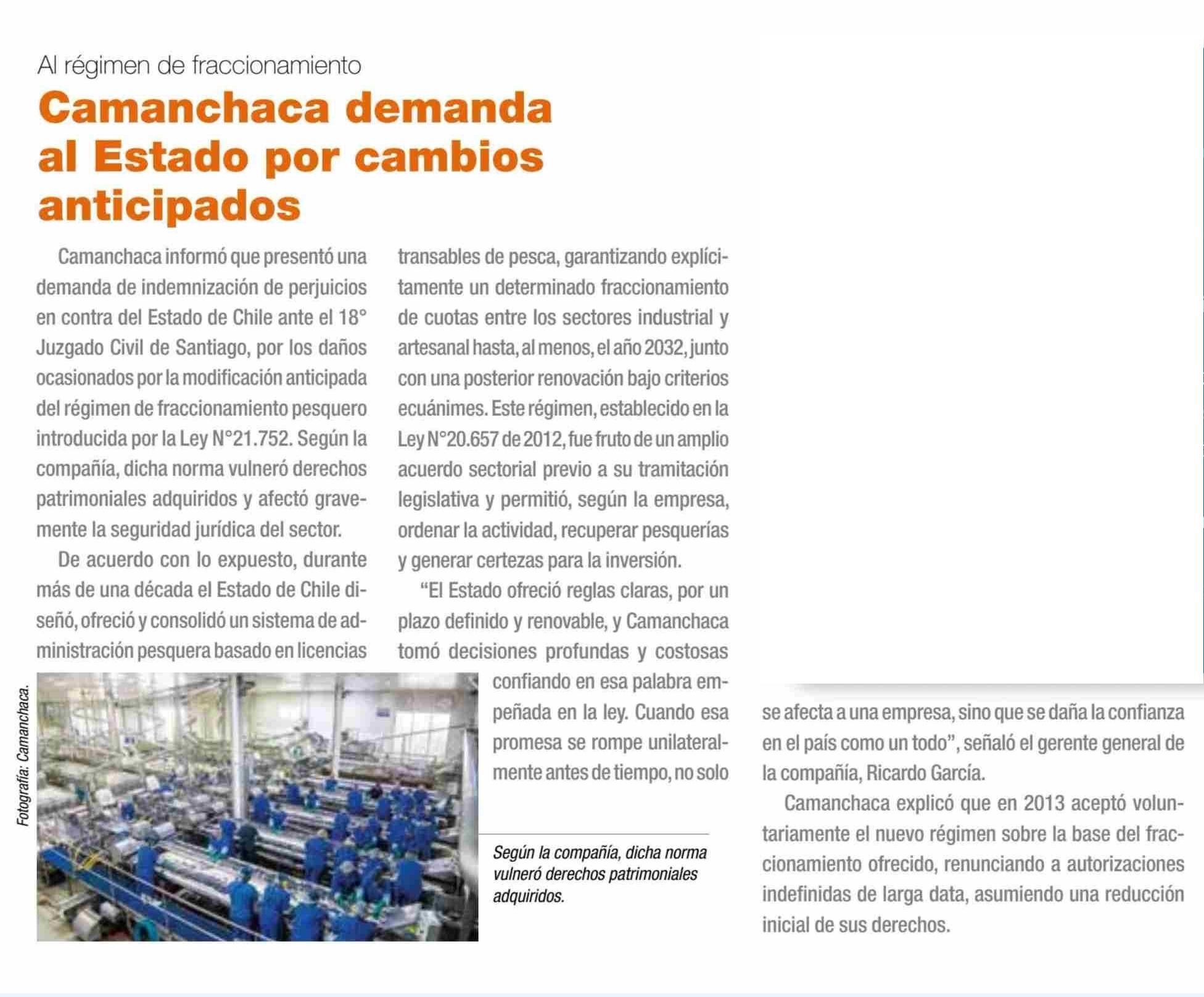 Camanchaca demanda al Estado por cambios anticipados