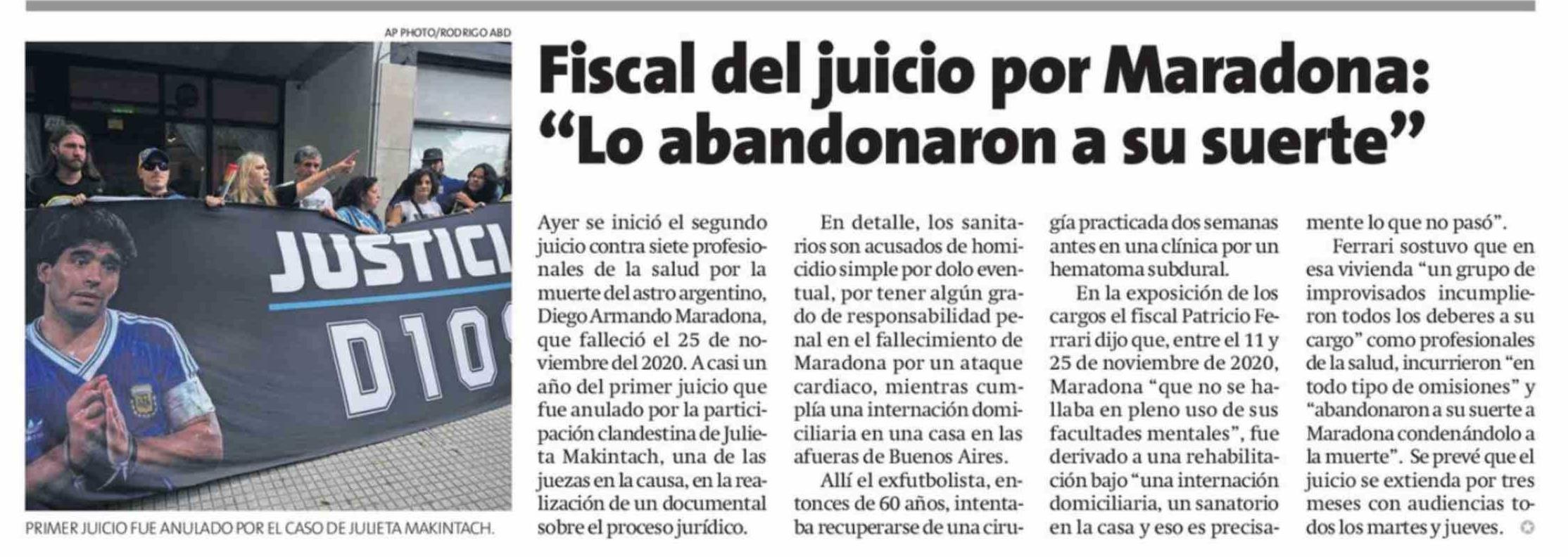 Fiscal del juicio por Maradona: "Lo abandonaron a su suerte"