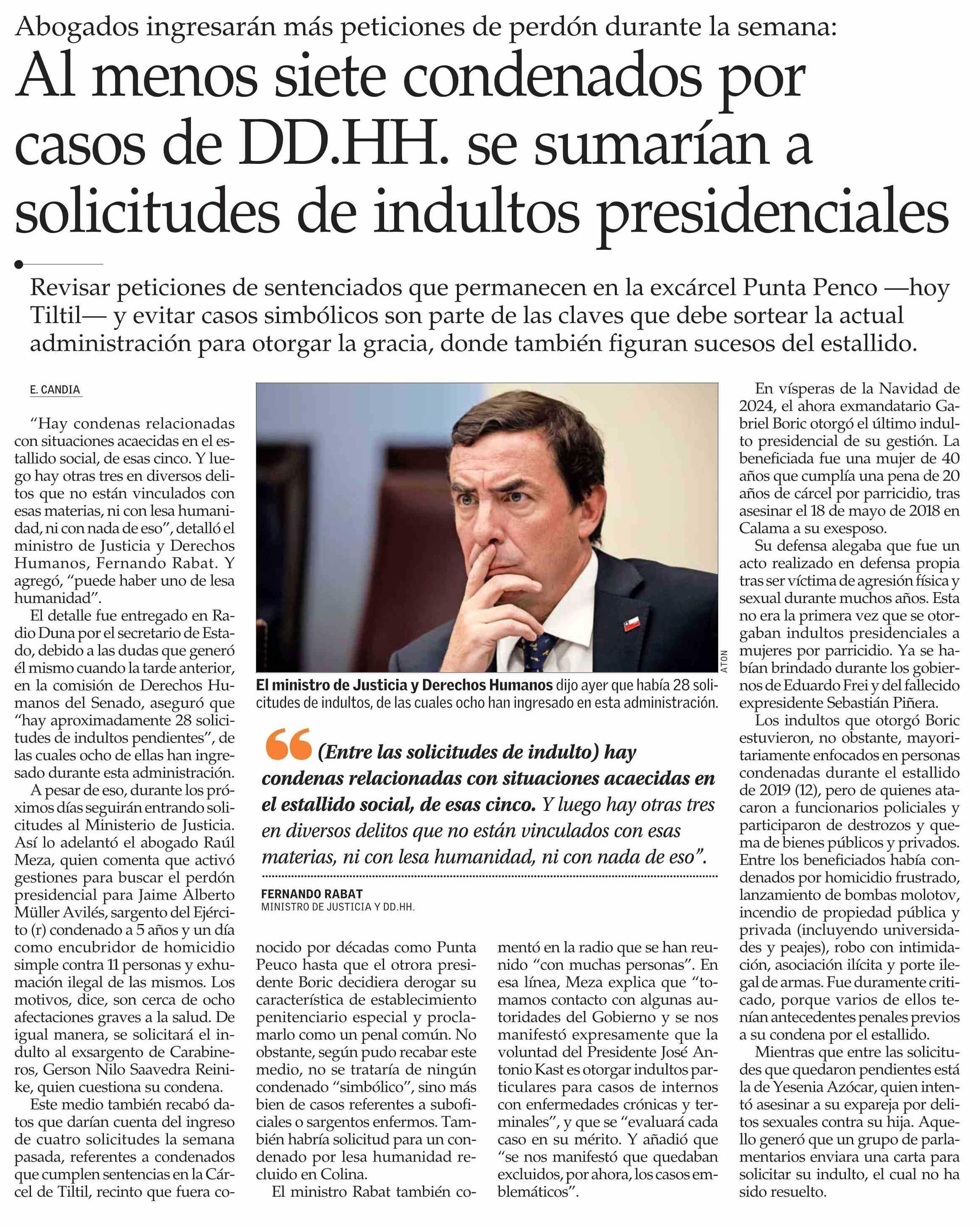 Al menos siete condenados por casos de DD.HH. se sumarían a solicitudes de indultos presidenciales