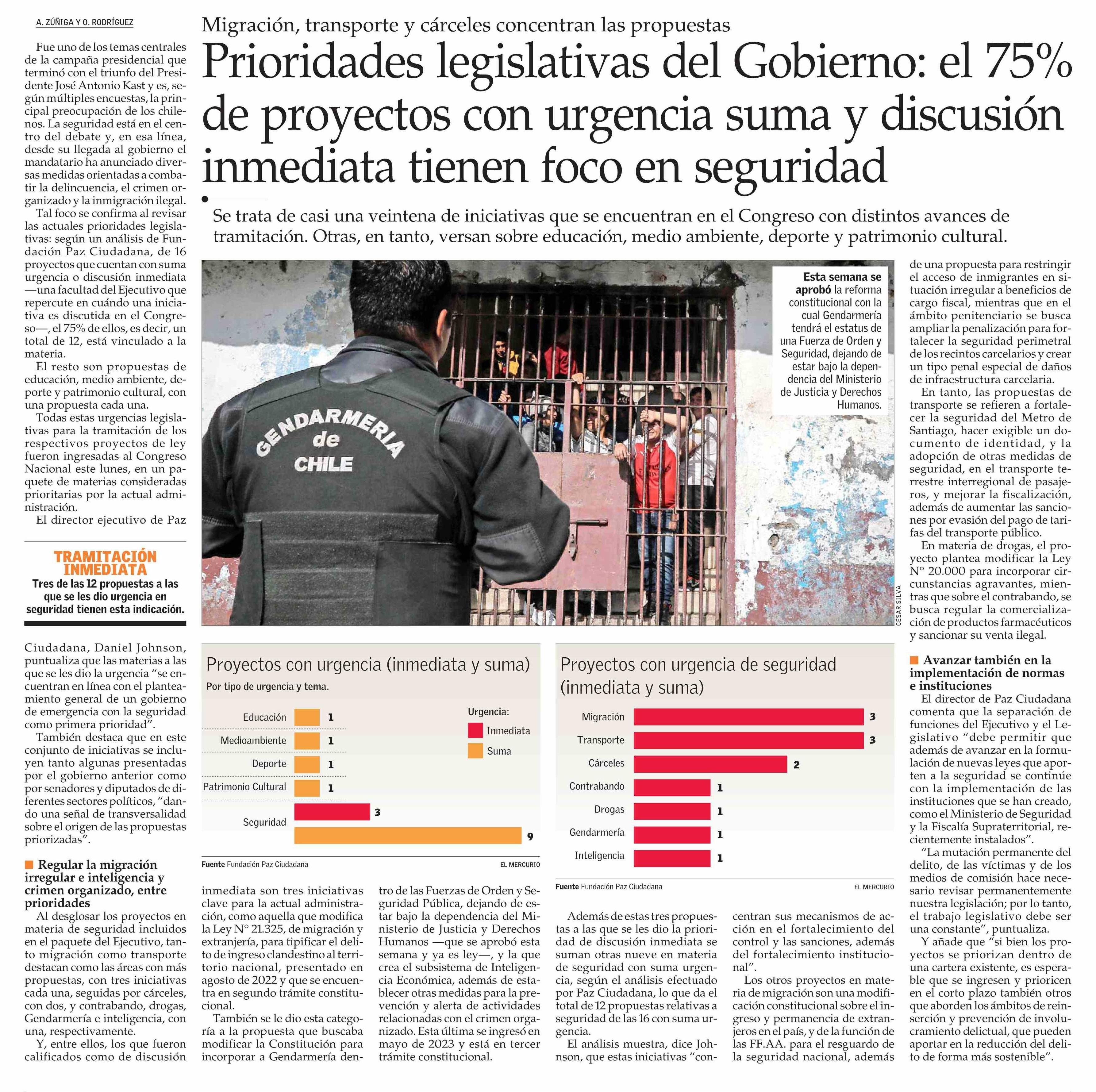 Prioridades legislativas del Gobierno: el 75% de proyectos con urgencia suma y discusión inmediata tienen foco en seguridad