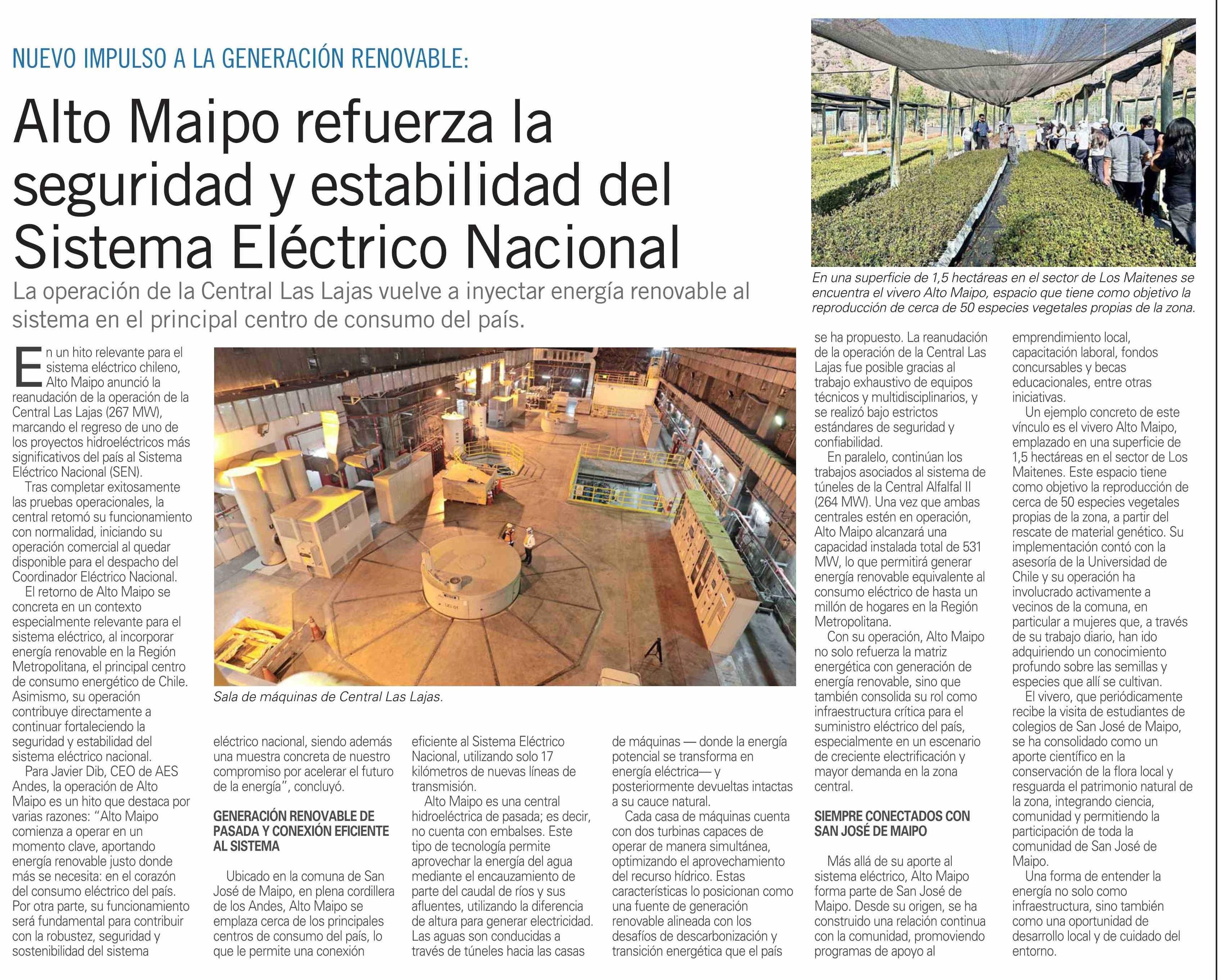 Alto Maipo refuerza la seguridad y estabilidad del Sistema Eléctrico Nacional