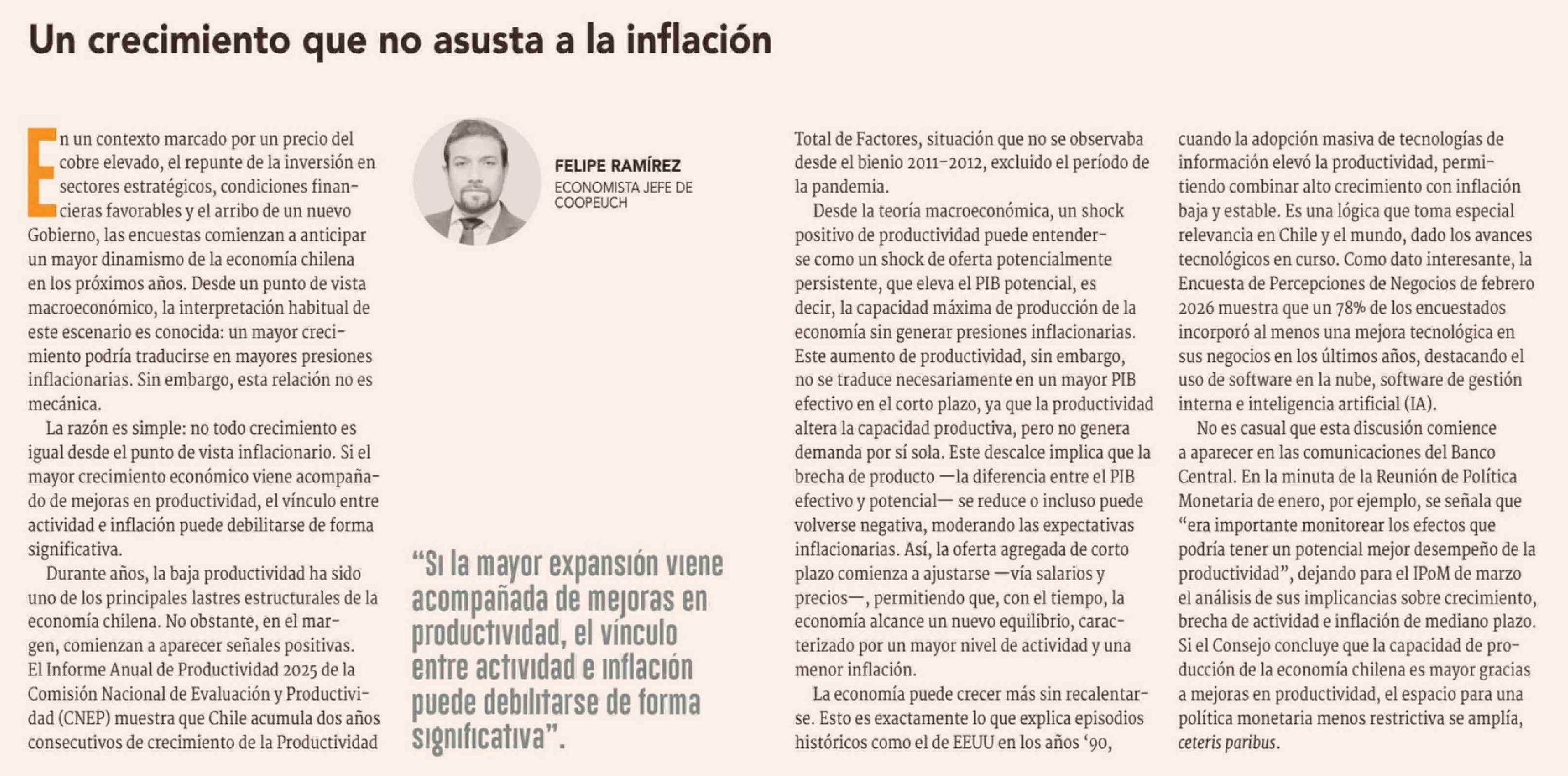 Columnas de Opinión: Un crecimiento que no asusta a la inflación