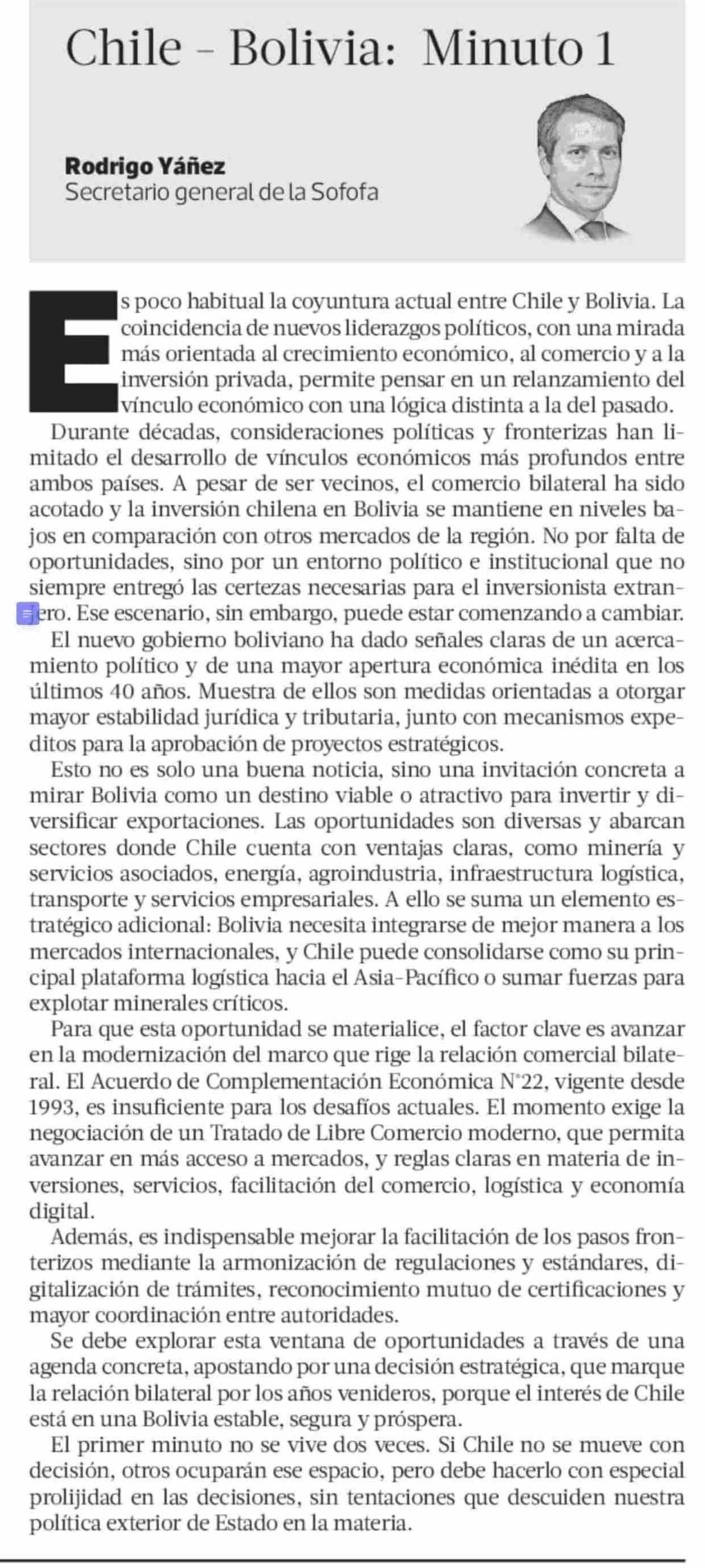 Columnas de Opinión: Chile - Bolivia: Minuto 1
