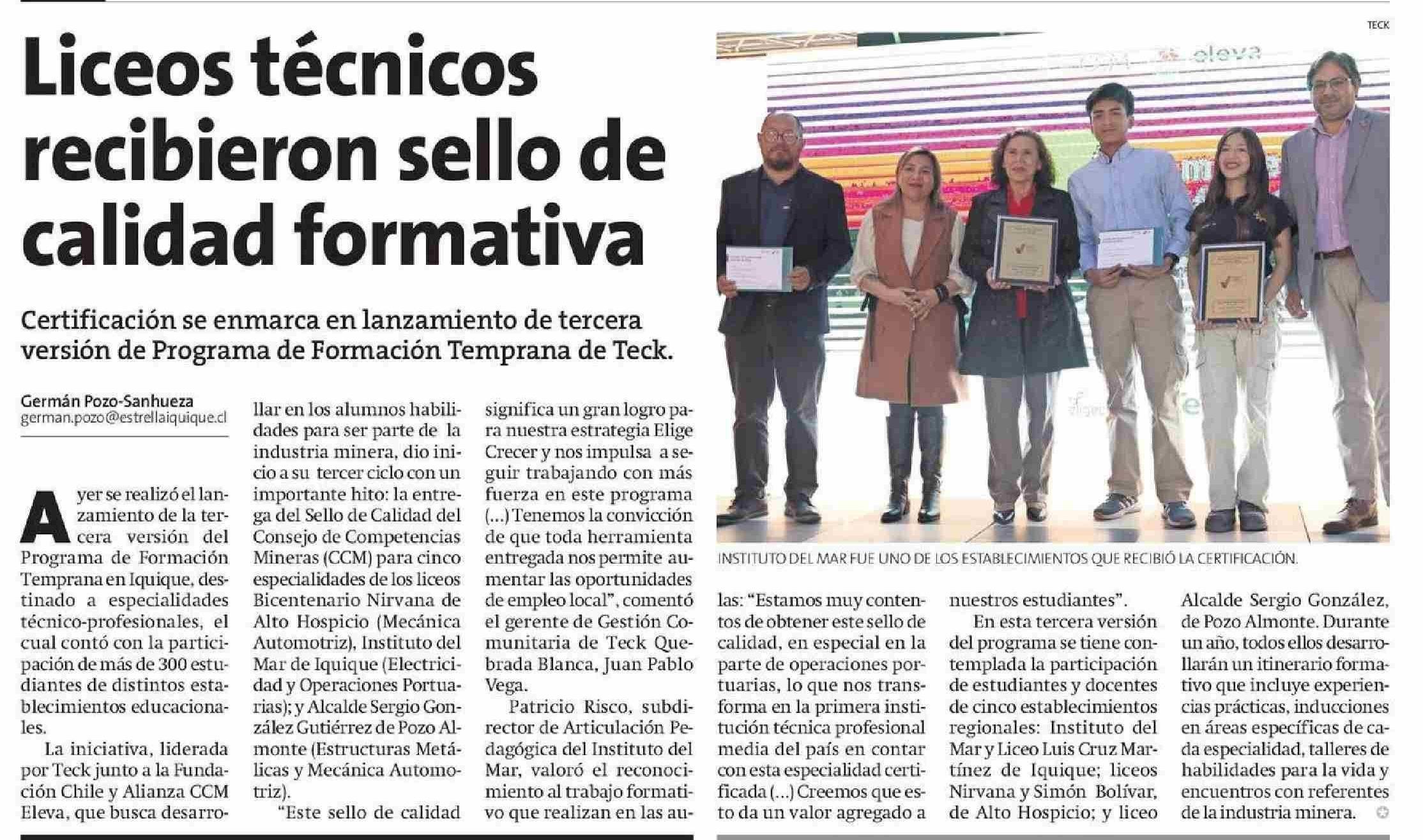 Liceos técnicos recibieron sello de calidad formativa PAY