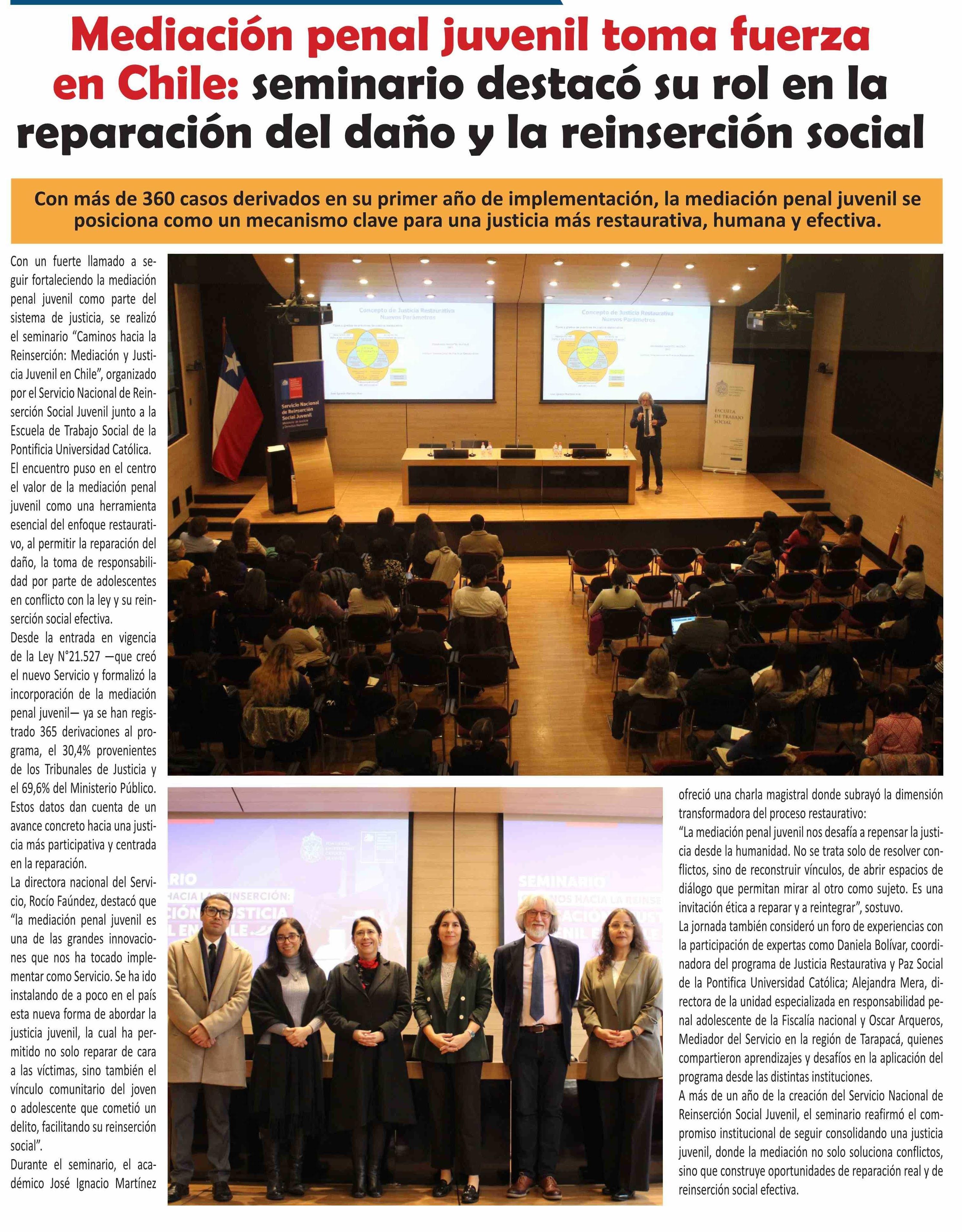 Mediación penal juvenil toma fuerza en Chile: seminario destacó su rol en la reparación del daño y la reinserción social