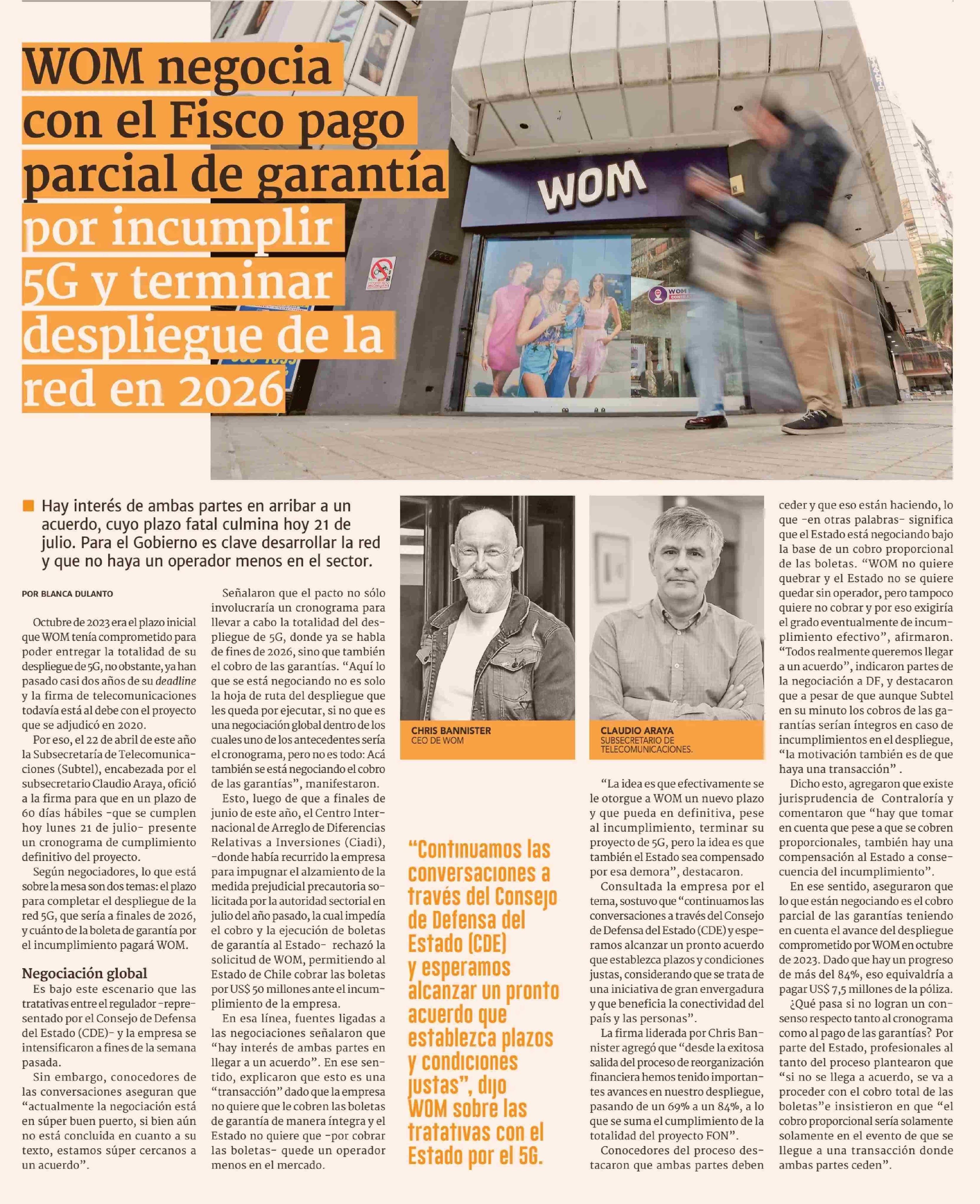 WOM negocia con el Fisco pago parcial de garantía por incumplir 5G y terminar despliegue de la red en 2026