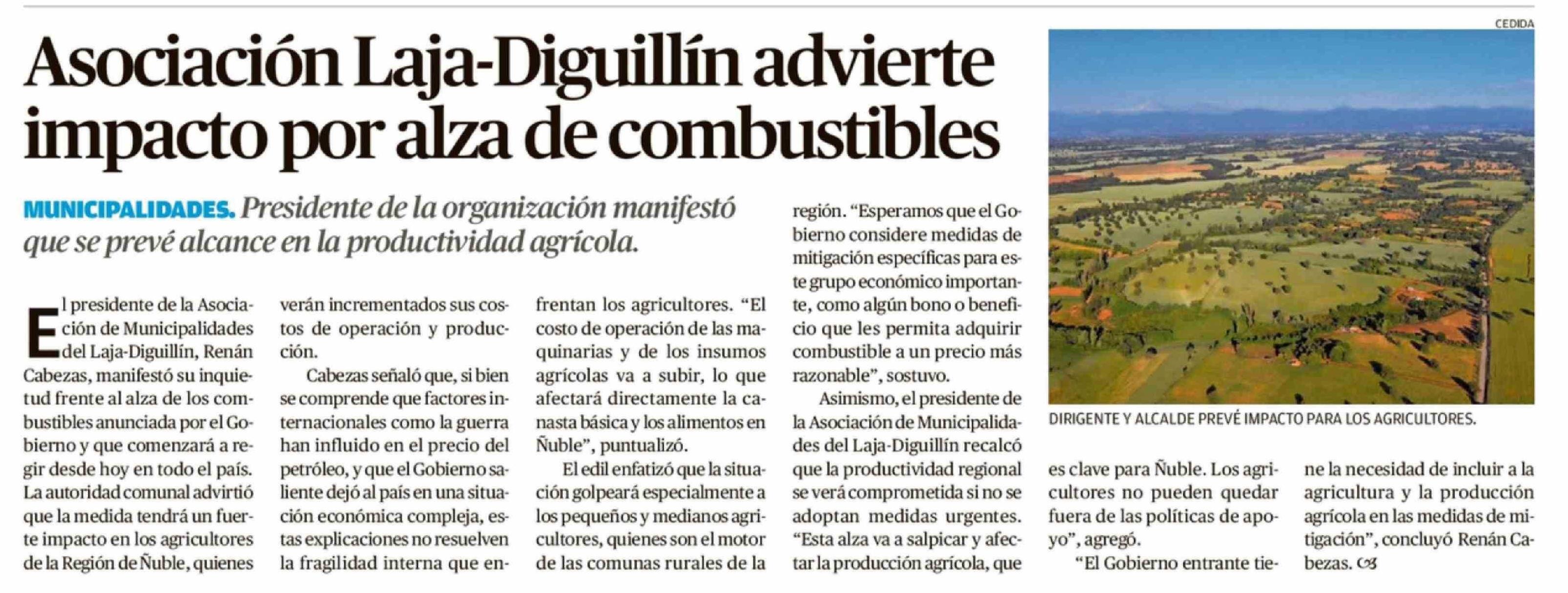 Asociación Laja-Diguillín advierte impacto por alza de combustibles