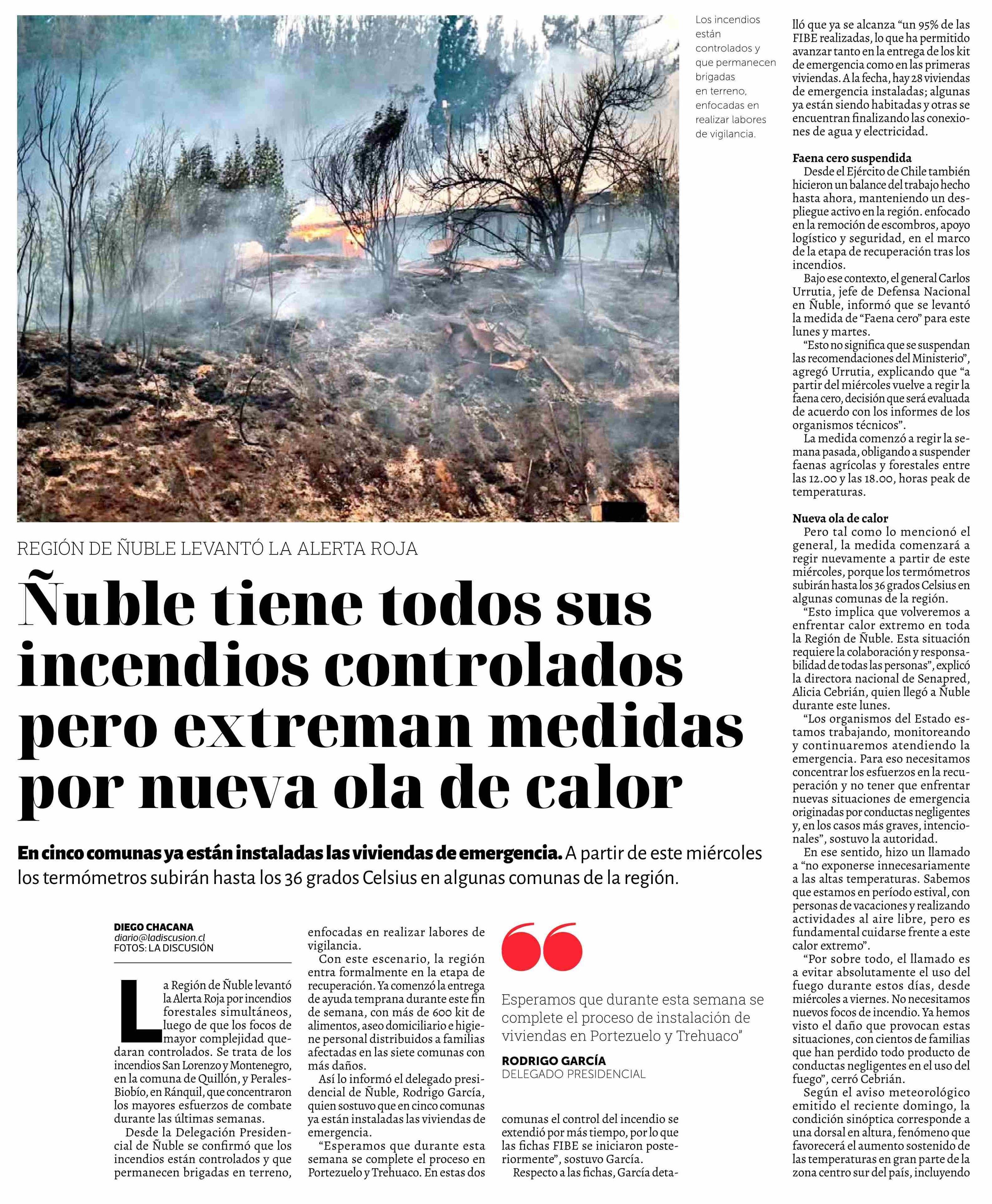 Ñuble tiene todos sus incendios controlados pero extreman medidas por nueva ola de calor