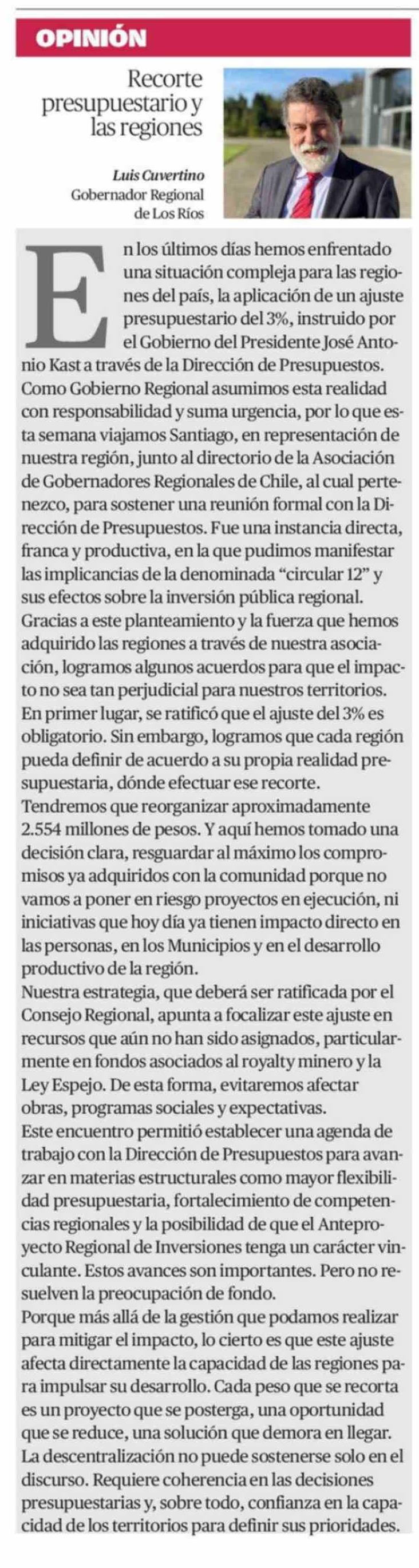 Columnas de Opinión: Recorte presupuestario y las regiones