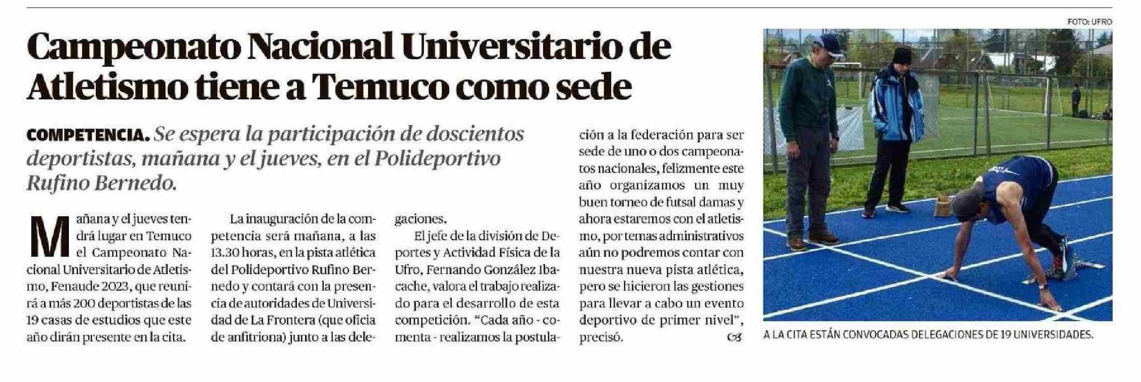Campeonato Nacional Universitario de Atletismo tiene a Temuco como sede