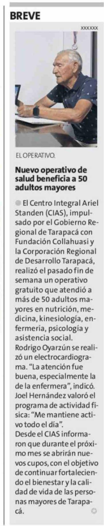 Nuevo operativo de salud beneficia a 50 adultos mayores