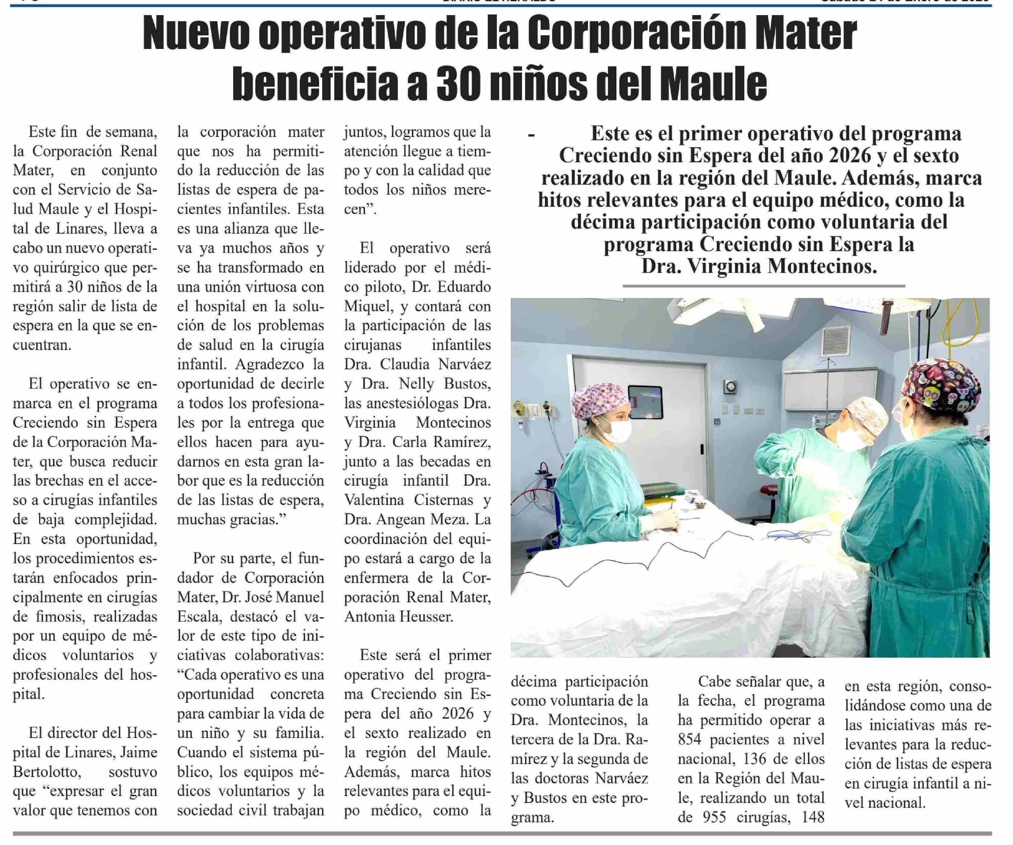 Nuevo operativo de la Corporación Mater beneficia a 30 niños del Maule