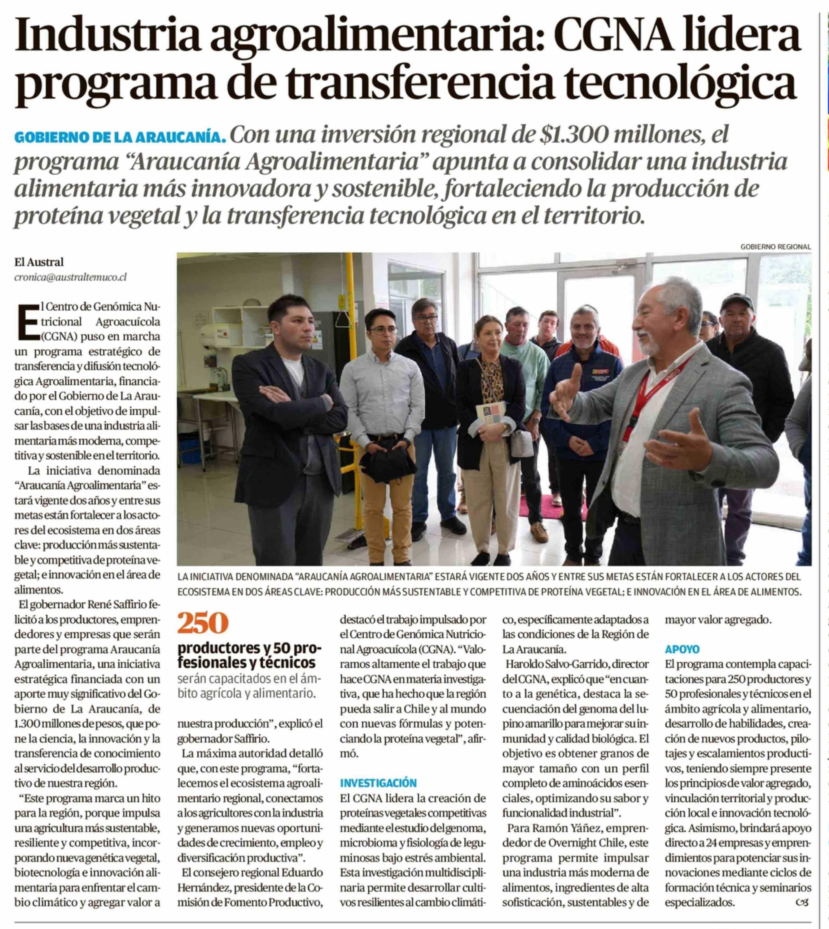 Industria agroalimentaria: CGNA lidera programa de transferencia tecnológica