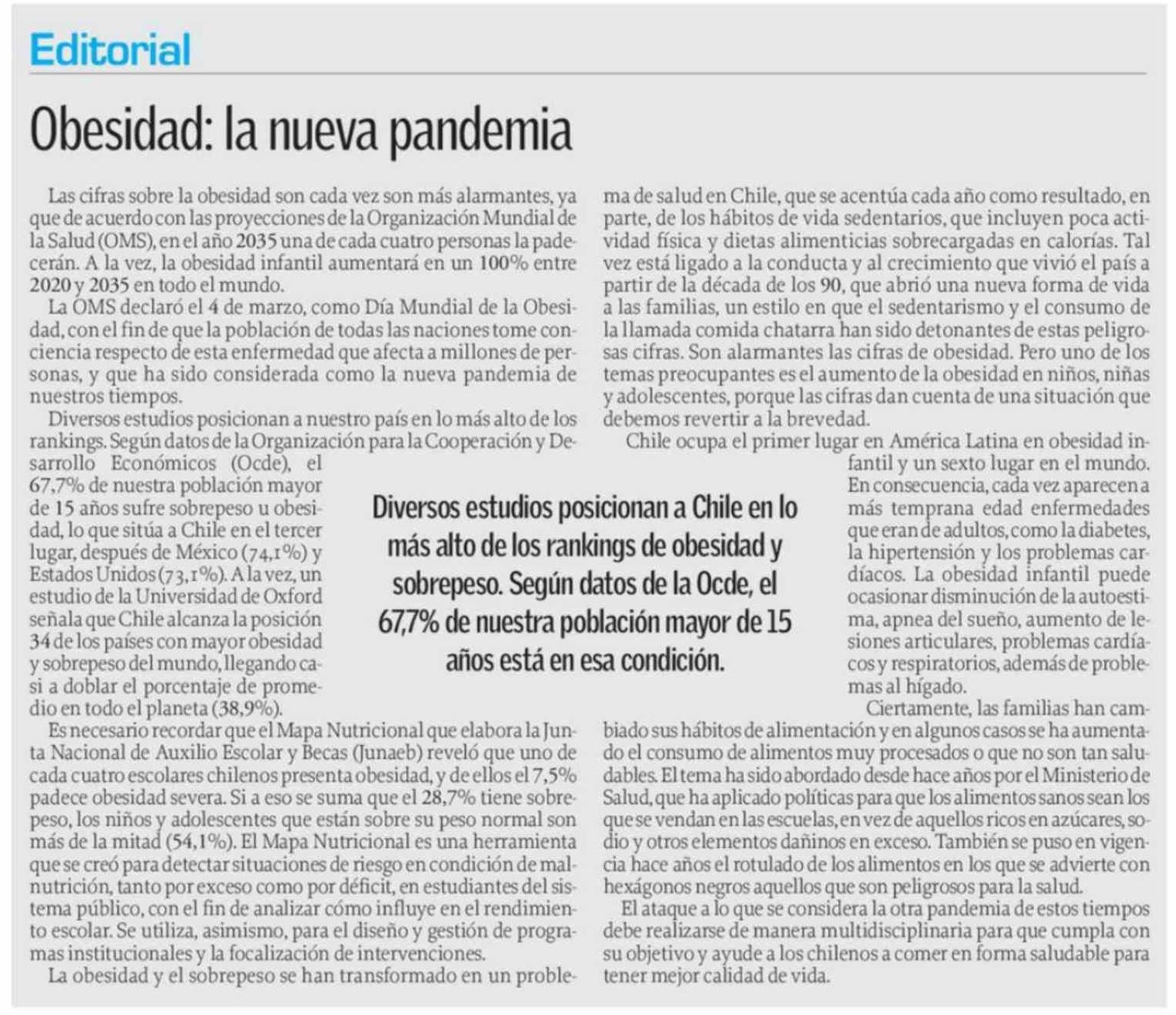 Editorial: Obesidad: la nueva pandemia