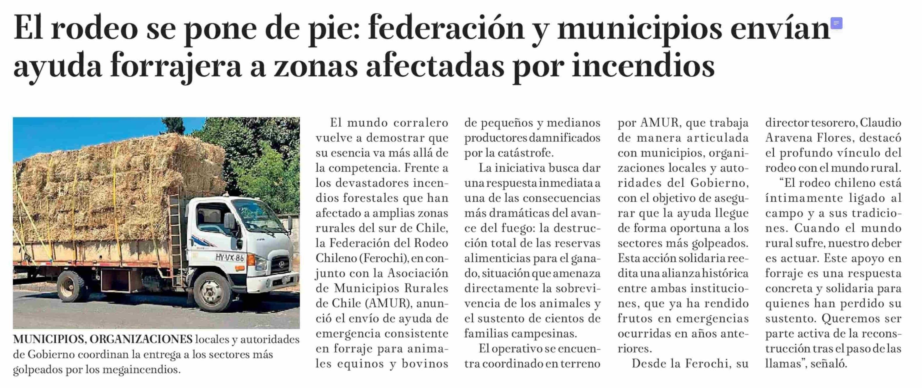 El rodeo se pone de pie: federación y municipios envían ayuda forrajera a zonas afectadas por incendios